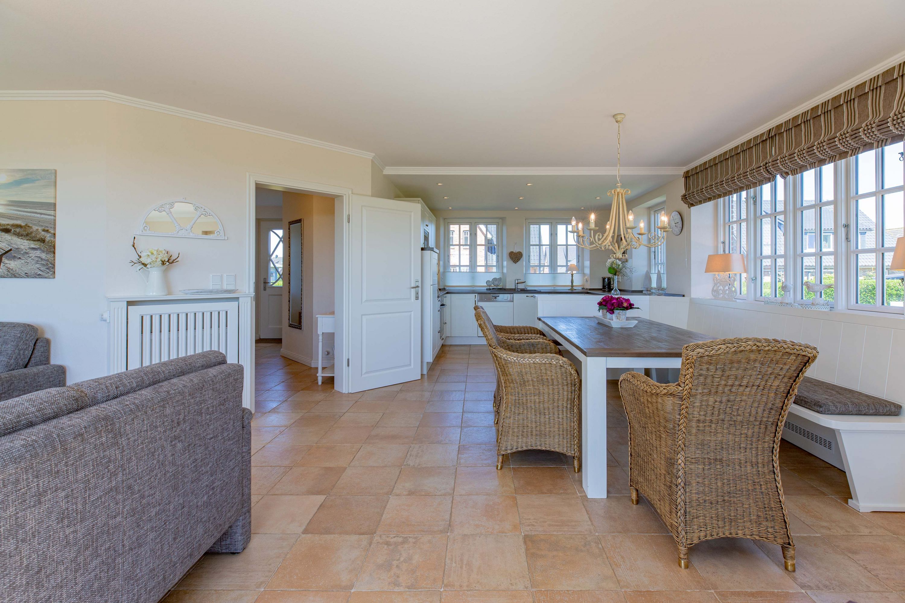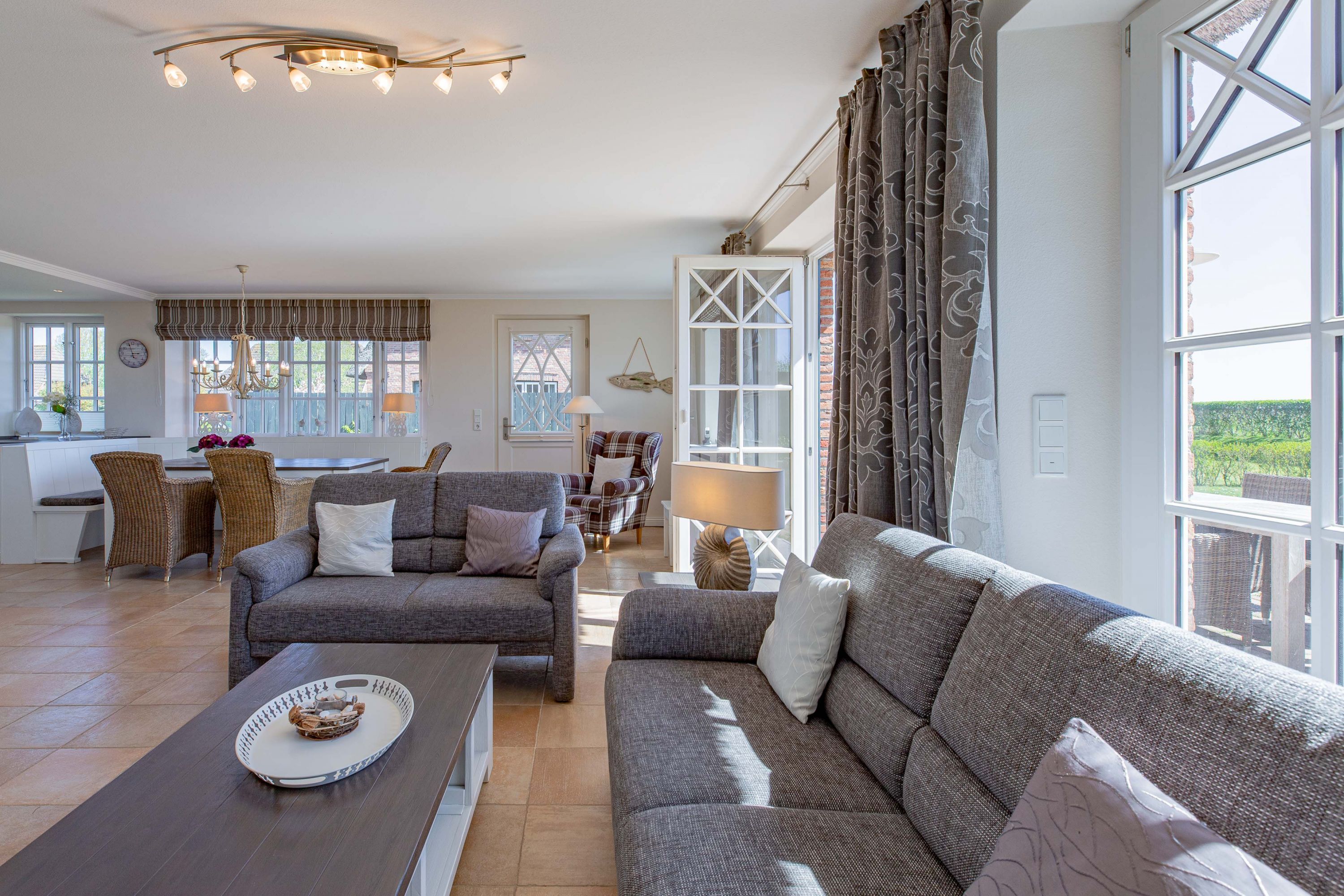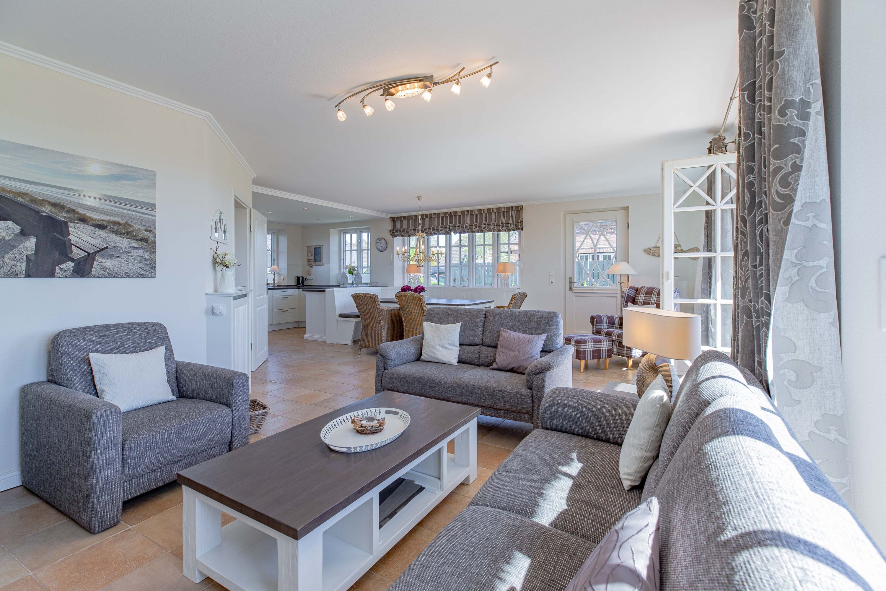 In dieser großzügigen Reetdachhaushälfte fühlt man sich sofort wohl und kann unbeschwerte, erholsame Ferien verbringen. Der hübsche Ort Borgsum ist nur wenige Minuten von Nieblum, mit vielen Einkaufsmöglichkeiten und Restaurants, entfernt. Der Bäcker und ein Fahrradverleih praktisch gleich um die Ecke. Gleich gegenüber von der Borgsumer Mühle befinden sich ein Restaurant/Café mit Garten. Die zentrale Lage von Borgsum ermöglicht Ihnen auch mal ohne Auto überall hinzukommen.
