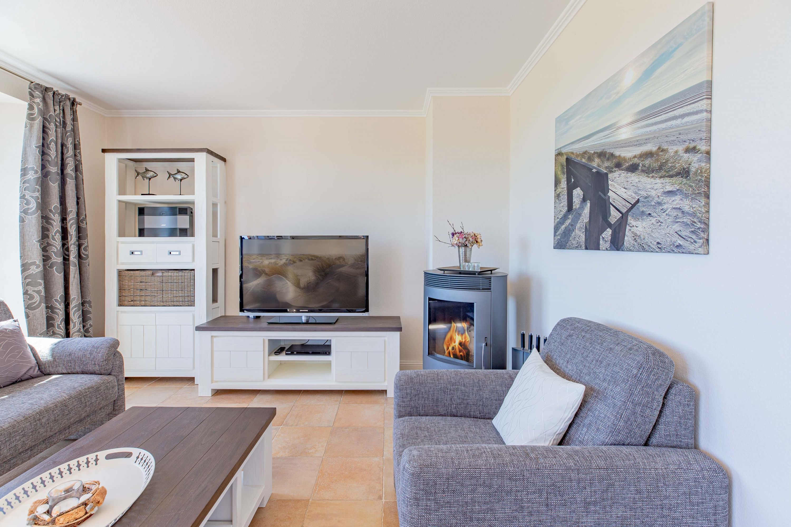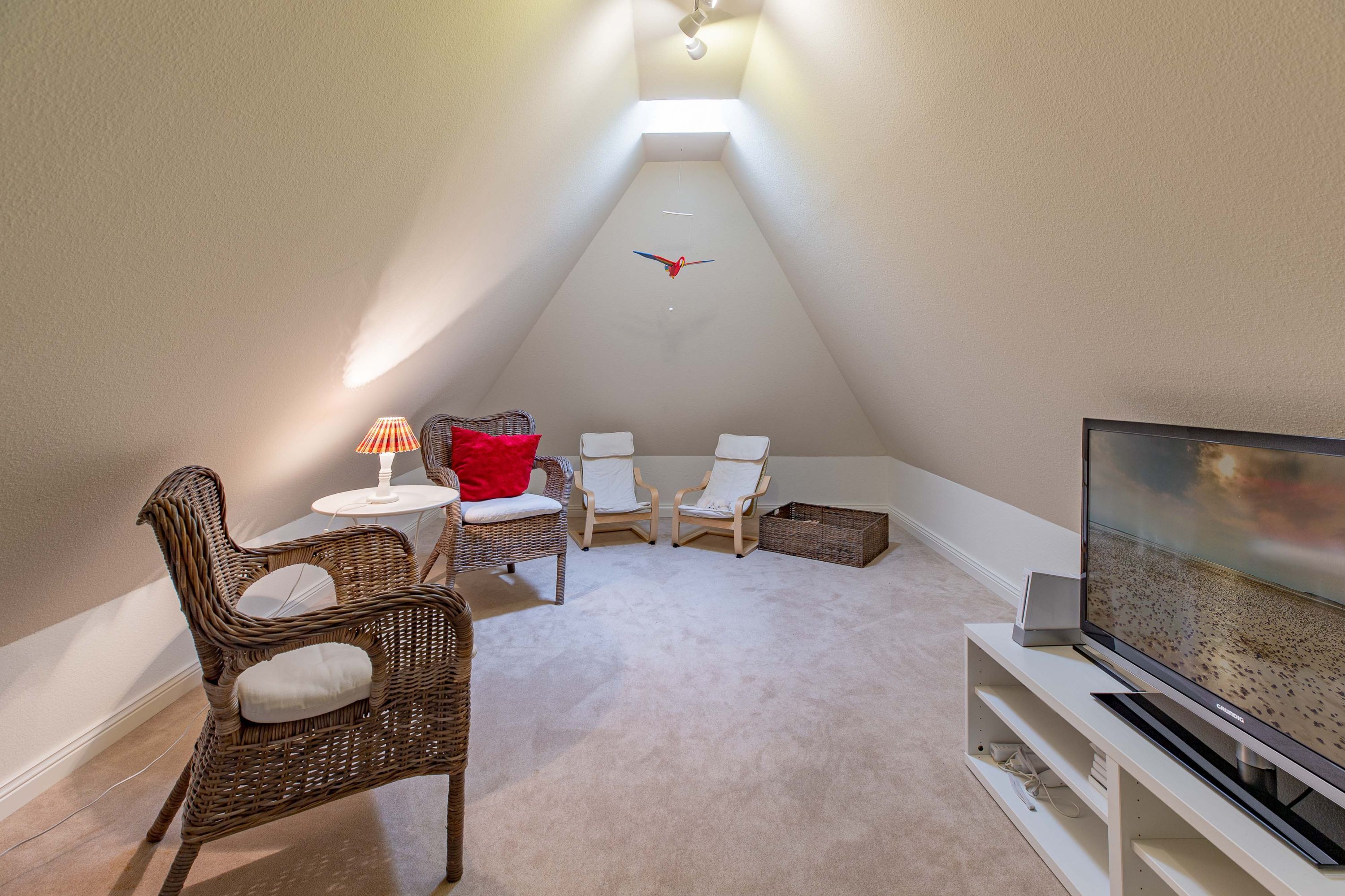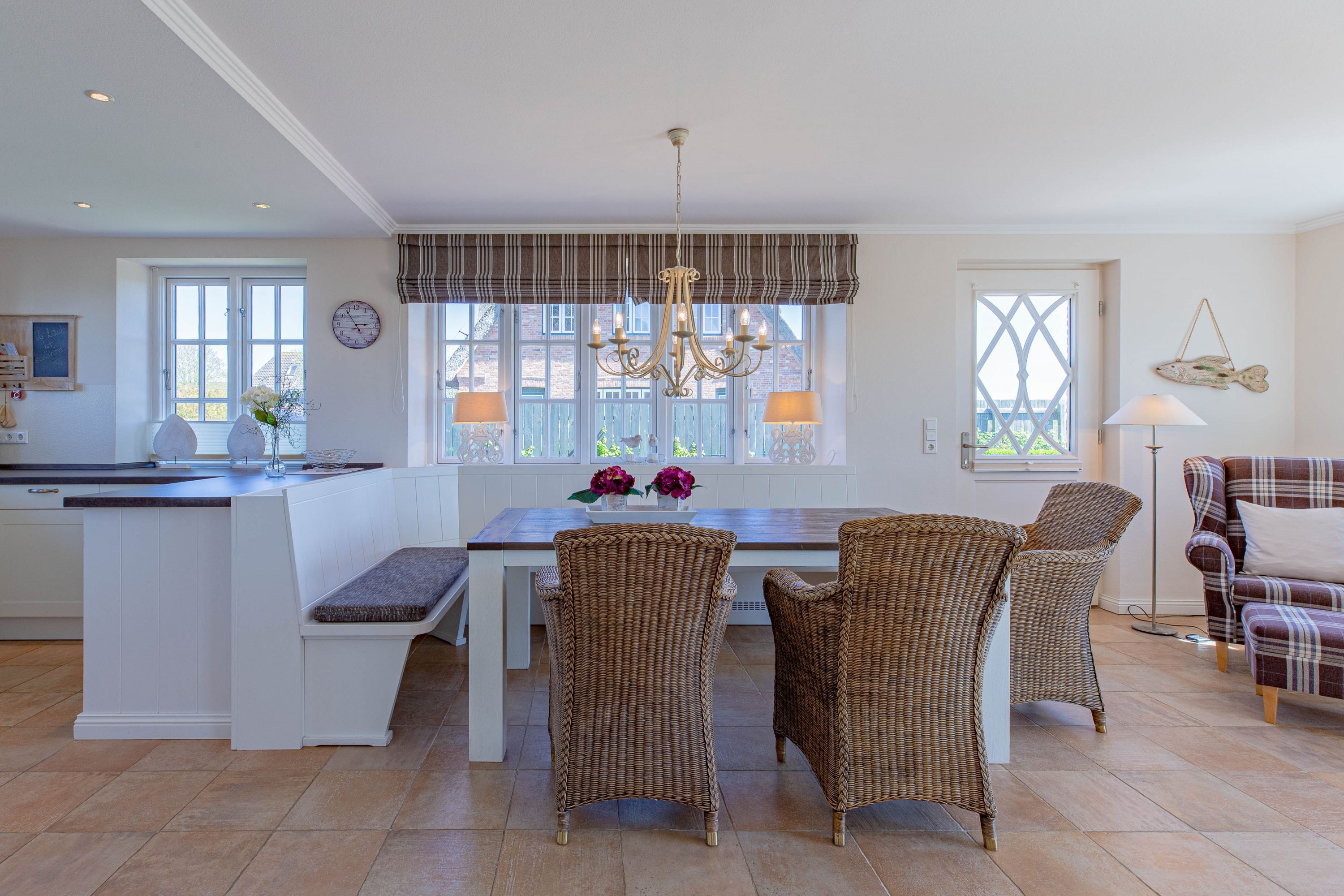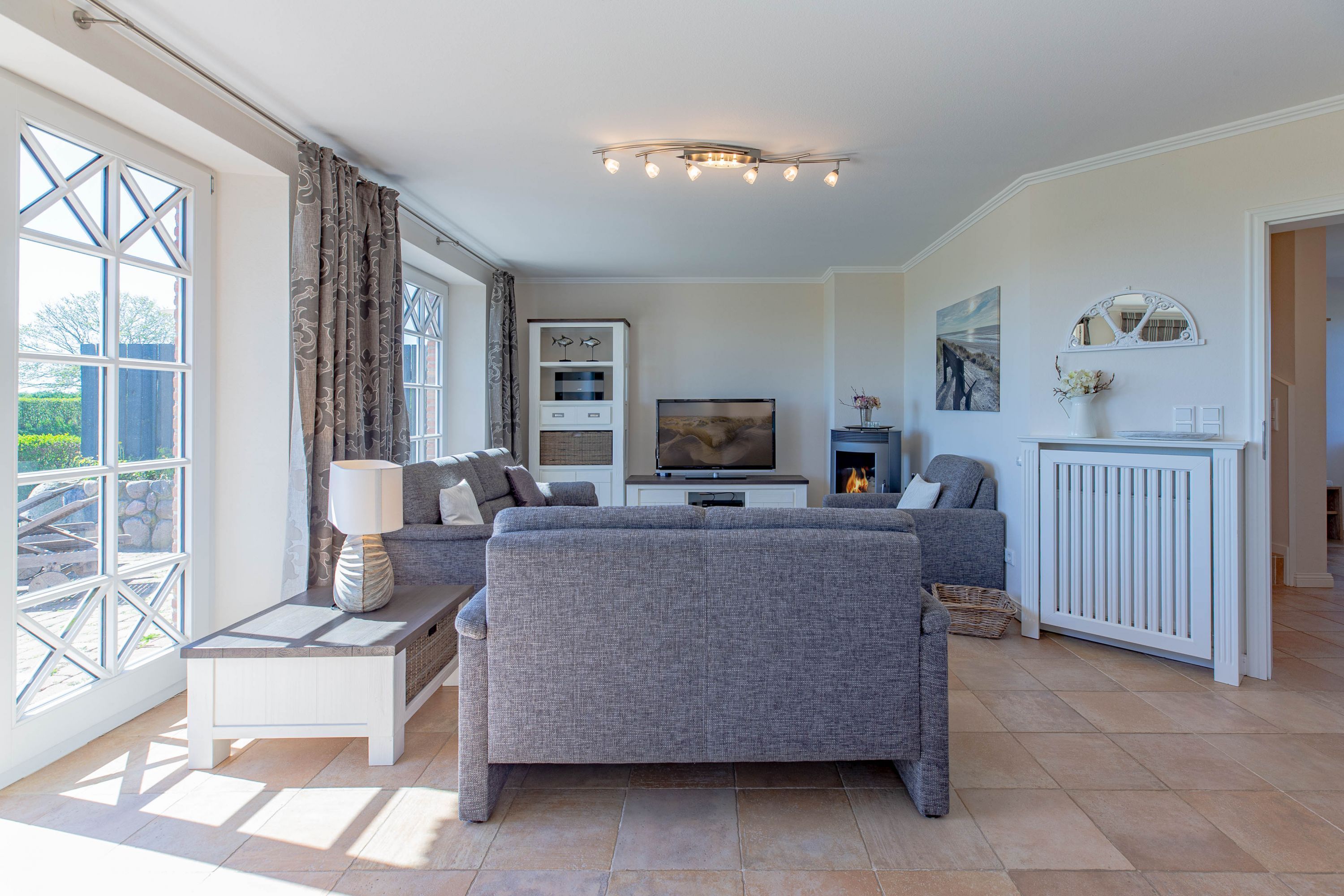 In dieser großzügigen Reetdachhaushälfte fühlt man sich sofort wohl und kann unbeschwerte, erholsame Ferien verbringen. Der hübsche Ort Borgsum ist nur wenige Minuten von Nieblum, mit vielen Einkaufsmöglichkeiten und Restaurants, entfernt. Der Bäcker und ein Fahrradverleih praktisch gleich um die Ecke. Gleich gegenüber von der Borgsumer Mühle befinden sich ein Restaurant/Café mit Garten. Die zentrale Lage von Borgsum ermöglicht Ihnen auch mal ohne Auto überall hinzukommen.