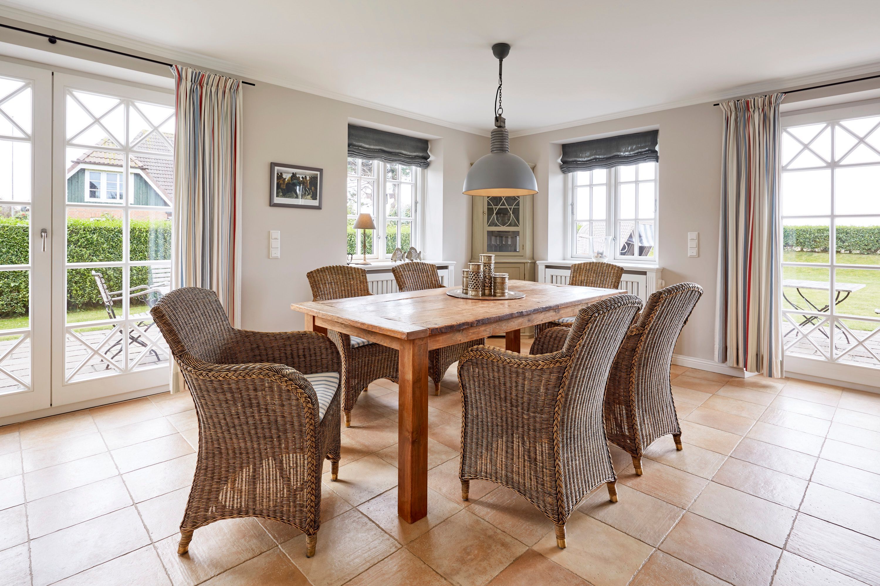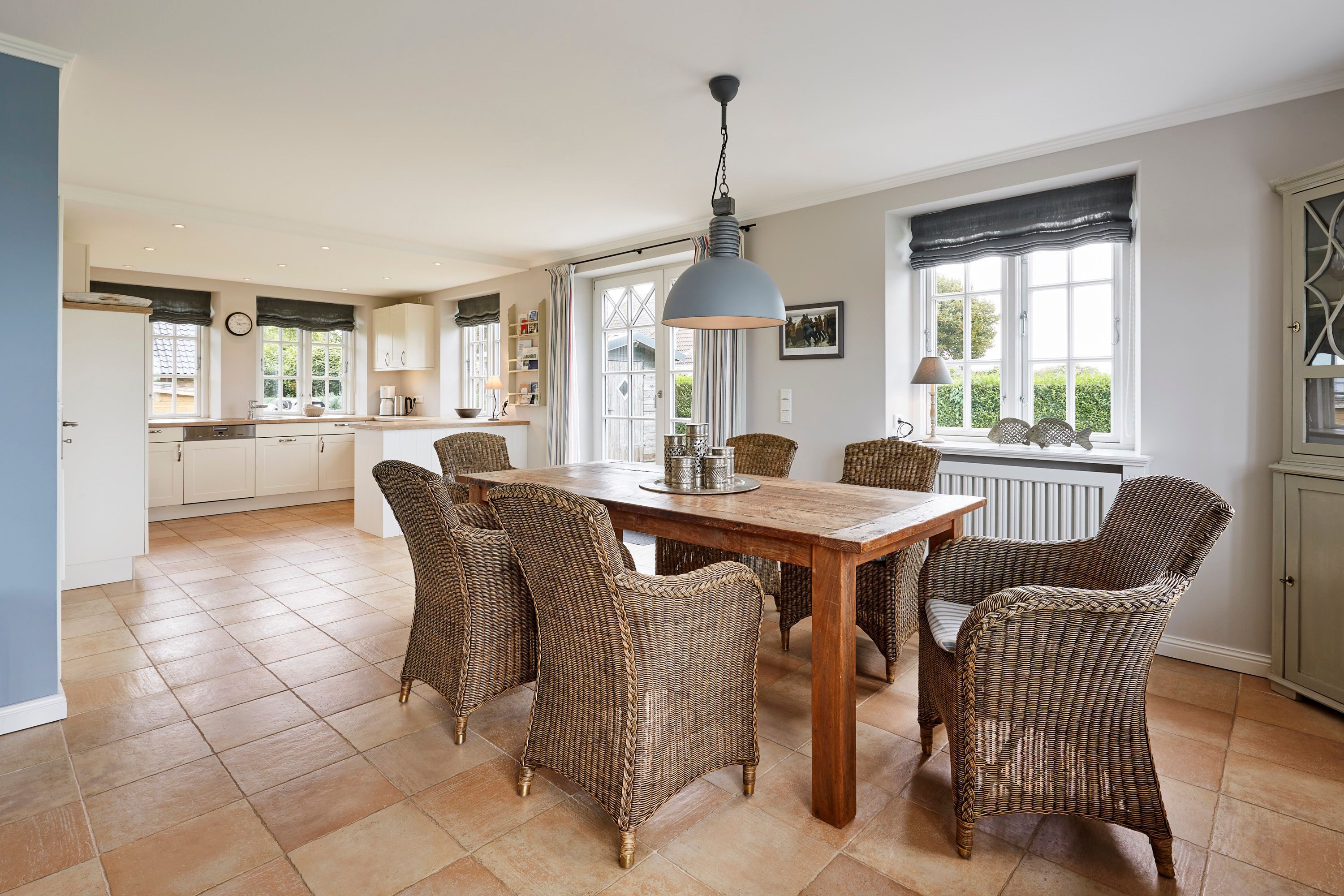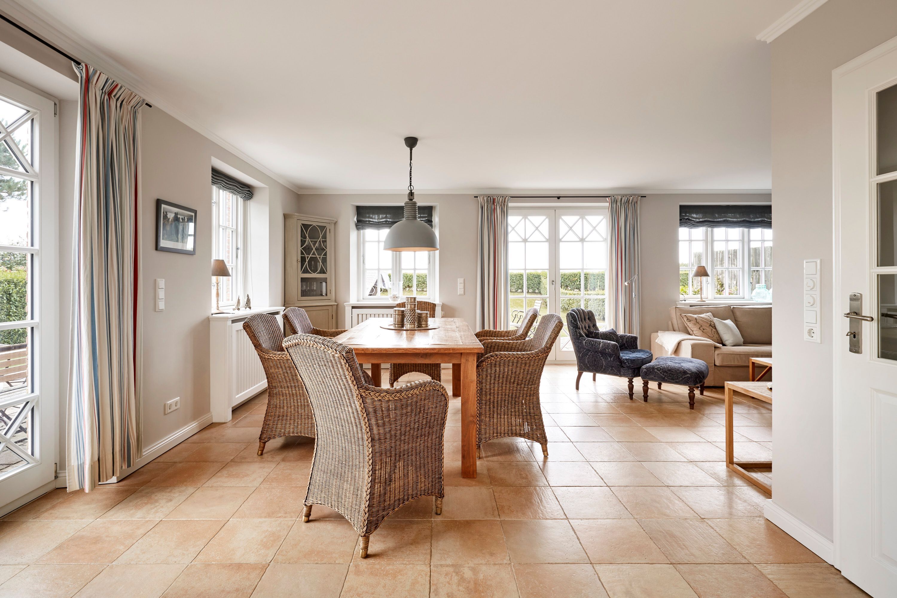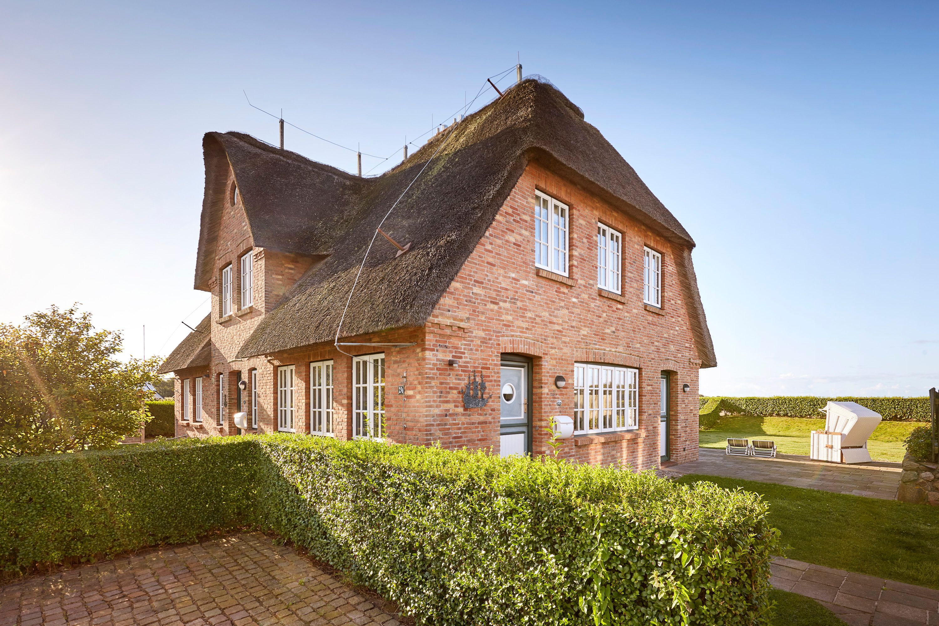 In dieser großzügigen Reetdachhaushälfte, in herrlicher Lage mit freiem Blick über die Landschaft auf das Meer, fühlt man sich sofort wohl und kann unbeschwerte, erholsame Ferien verbringen. Der hübsche Ort Borgsum ist nur wenige Minuten von Nieblum, mit vielen Einkaufsmöglichkeiten und Restaurants, entfernt. Der Bäcker und ein Fahrradverleih praktisch gleich um die Ecke. Gleich gegenüber von der Borgsumer Mühle befinden sich ein Restaurant/Café mit Garten. Die zentrale Lage von Borgsum ermöglicht Ihnen auch mal ohne Auto überall hinzukommen.