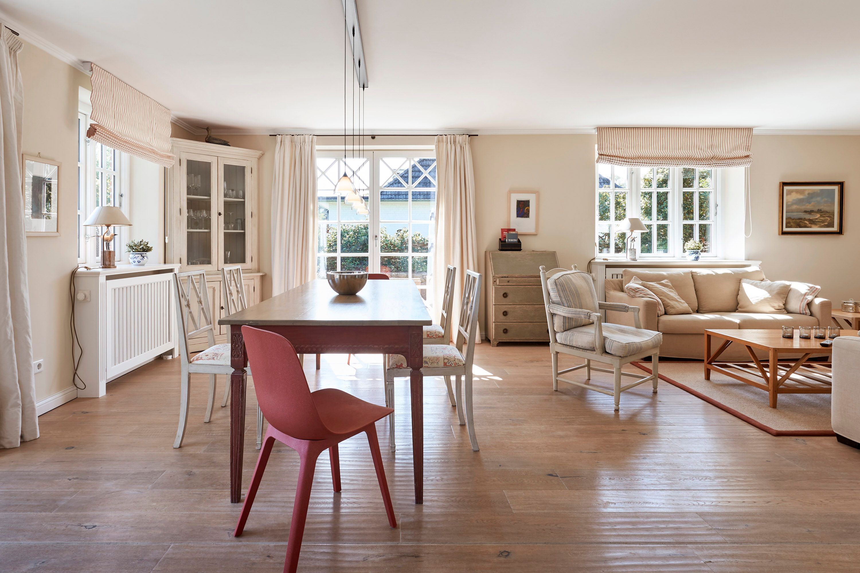 Kommen Sie ins Haus Auswanderer. Die schöne Reetdachhaushälfte wurde liebevoll und geschmackvoll eingerichtet. Sie werden Ihren Urlaub in vollen Zügen genießen. Ob Frühstück auf der Terrasse oder Relaxstunden in der Sauna - hier steht Erholung pur auf dem Programm. Das Doppelhaus befindet sich in ruhiger Lage von Nieblum. Das historische Friesendorf gilt seit langem als eines der schönsten Dörfer in ganz Norddeutschland. Die alten Kapitänshäuser in der direkten Nachbarschaft, gute Einkaufsmöglichkeiten, nur 800 Meter Entfernung zum Strand und urige Kneipen machen Haus Auswanderer während des ganzen Jahres zu einem unvergesslichen Urlaubsdomizil. Herrlich, einmal in einem echten Dorf mit Kirche und Meere (Ententeich) leben zu können.