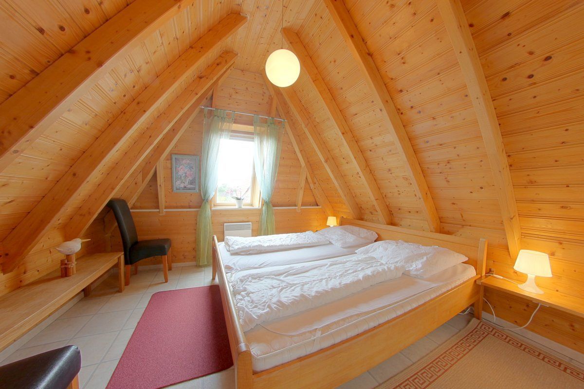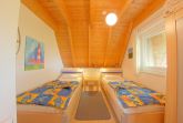Ein Schlafzimme mit 2 Einzelbetten und das Duschbad befinden sich ebenfalls im Erdgeschoss. Im Obergeschoss finden Sie das Elternschlafzimmer mit Doppelbett und Flachbild TV, sowie ein Kinderzimmer mit 2 Einzelbetten und ebenfalls mit TV. Ein WC ist ebenfalls im Obergeschoss vorhanden.