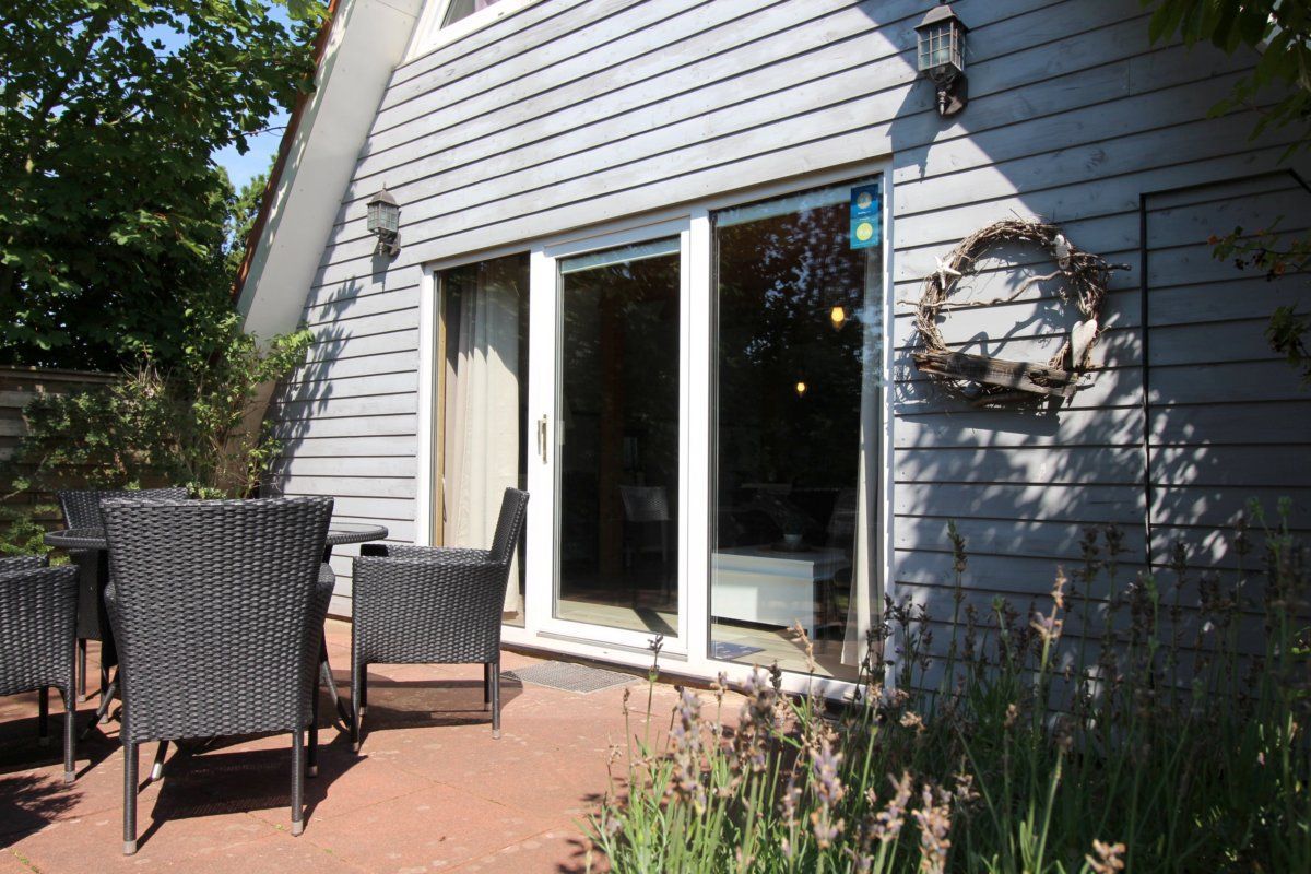 Die Terrasse verfügt über einen Gartentisch mit vier Gartenstühlen, Sonnenschirm, zwei Sonnenliegen und einem Holzkohlegrill. Ein kostenloser PKW Stellplatz befindet sich direkt vor der Tür.