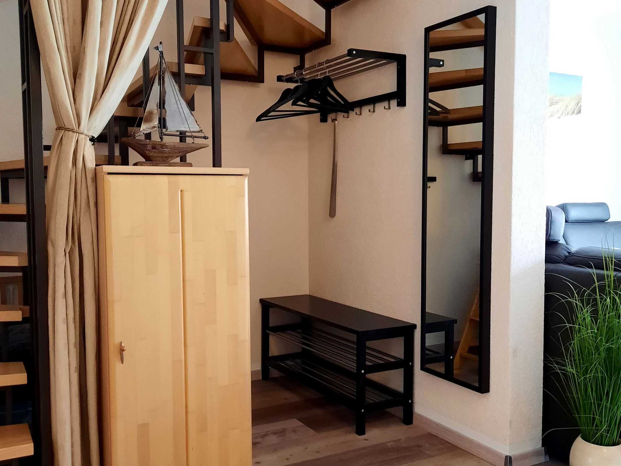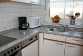 EG: Geräumiger Wohnraum mit Essplatz und seperater Küche. Umfangreiche Ausstattung mit SAT-TV (LED), Kompaktstereoanlage mit DVD-Player, Spülmaschine, Mikrowelle, Waschmaschine, Kinderhochstuhl, Treppengitter und Spielzeug. Dusche/WC, Fön