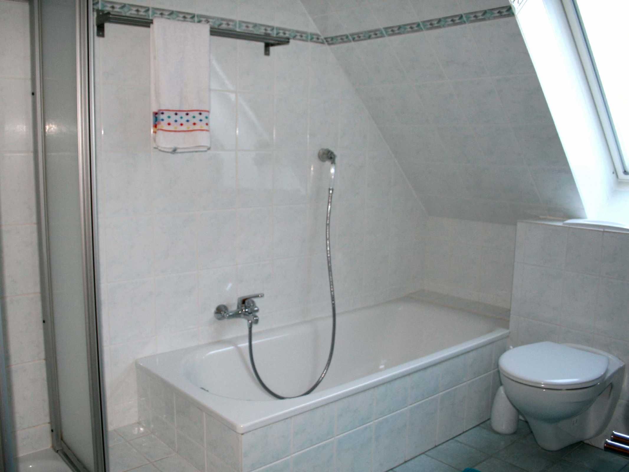 OG: 3 sep. Schlafräume: 2x mit Doppelbett, 1x mit Etagenbett, Kinderreisebett, zusätzliches Bettgitter; Bad mit Du/WC, Badewanne und Fön.