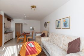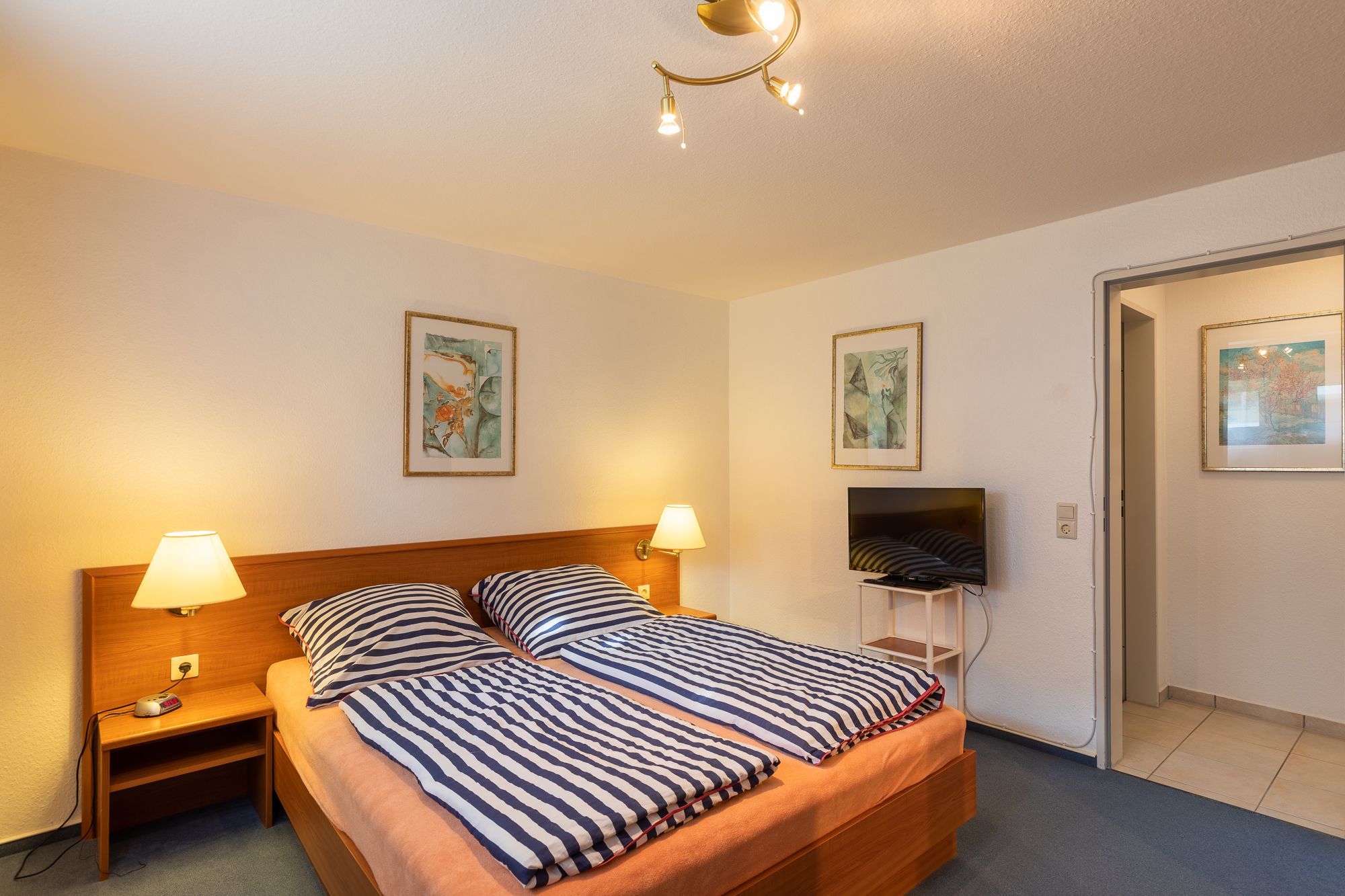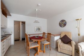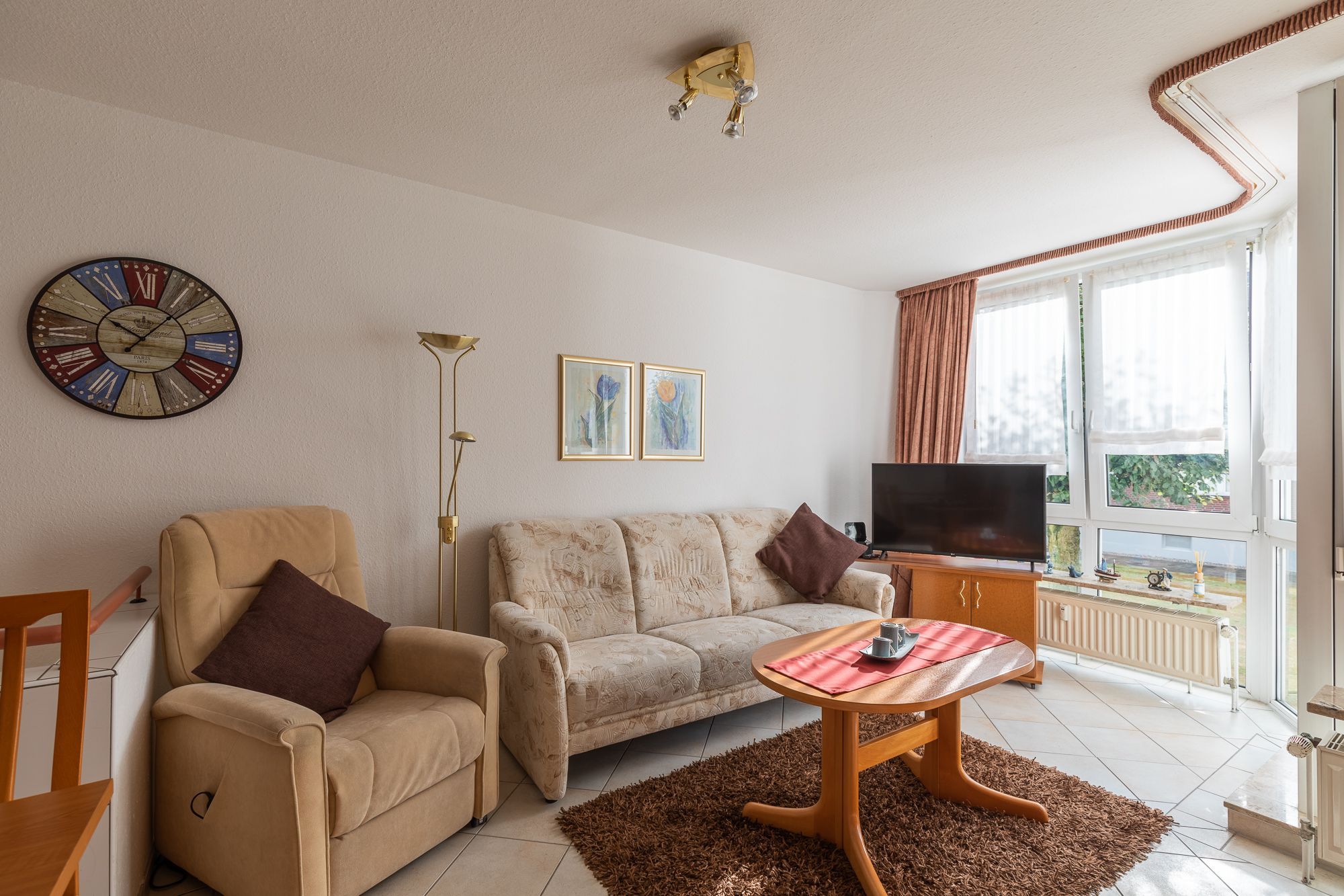 Die Räumlichkeiten, verteilen sich über 2 Etagen, mit einer Größe von ca. 54 m² Wohnfläche ist komplett bis zu 4 Personen ausgestattet. 1 Schlafzimmer mit einem Doppelbett, TV, Kleiderschrank (die Schlafzimmer mit Fenster, befinden sich im Souterrain, an heißen Tagen erwartet Sie hier eine angenehme Kühle und ein gutes Raumklima), großes Wohnzimmer mit Einbauküche (4 Plattenkochfeld, Dunstabzugshaube, Mikrowelle, Geschirrspüler, Toaster, Wasserkocher, Kaffeemaschine, Kühlschrank), Essplatz, Sofa-Ecke, 2 separate Schrankbetten und direktem Zugang zum Balkon, 1xDusche, 1 WC (separat), 1 Flatscreen TV, Nichtraucherwohnung, keine Haustiere, PKW-Stellplatz direkt am Haus.