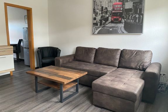 Im Wohnzimmer bietet ein gemütliches Ledersofa mit zwei Sesseln mit Kabel-Fernsehen sichtbar auf einem LCD-Fernseher einen Ort zur Entspannung. Eine kleine Musikanlage sowie WLAN sind Selbstverständlichkeit in dieser Wohnung.
