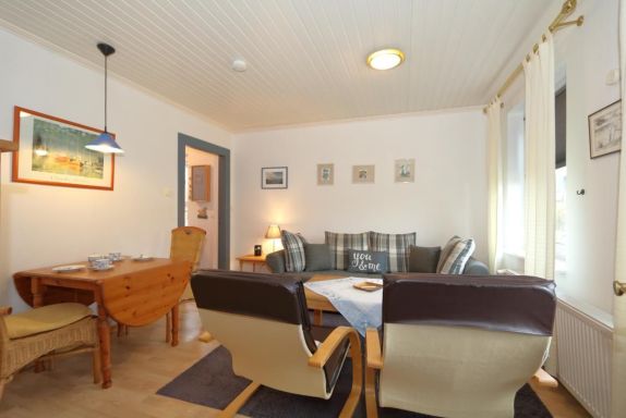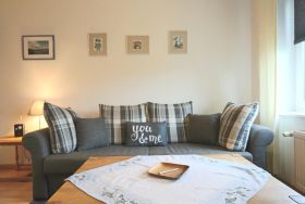 Das Appartement Friso für bis zu 3 Personen liegt im Erdgeschoß. Im Wohnbereich finden Sie eine Couchgarnitur zum Umbauen in eine Schlafcouch,