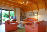 Im Untergeschoss befinden sich das Wohnzimmer mit Kaminofen, einen Flachbild-Kabel-TV und und kostenfreies W-LAN mit