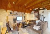 Der Wohnbereich mit Kamin, großem Flat-TV und natürlich kostenlosem Internet bietet genügend Platz für die Familie. Für die Lütten gibt es sogar einen Kindertisch.