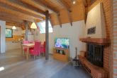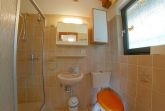Im Erdgeschoß befindet sich das offene Wohnzimmer mit Küche und Essplatz sowie das geräumige und taghelle Duschbad.