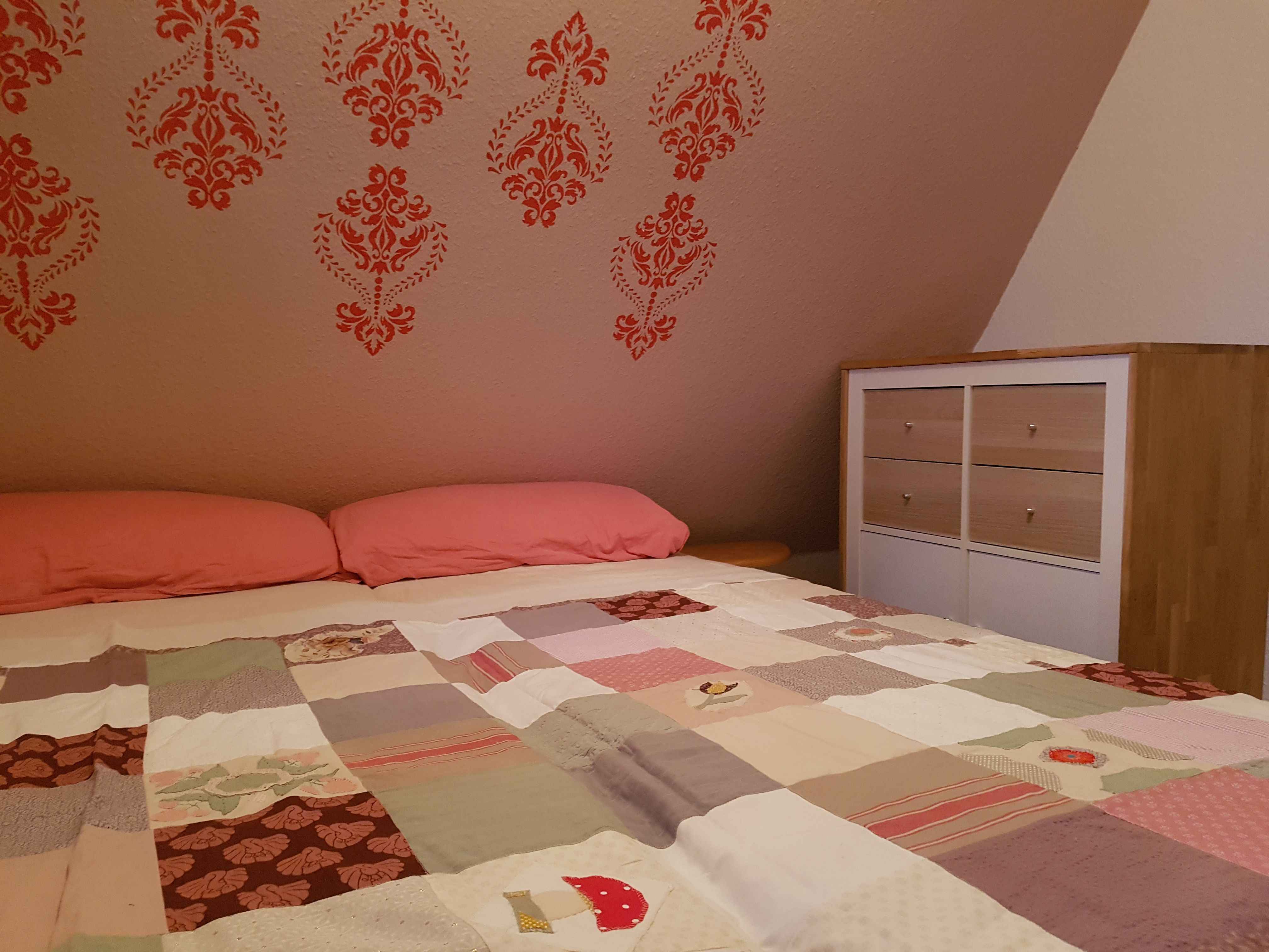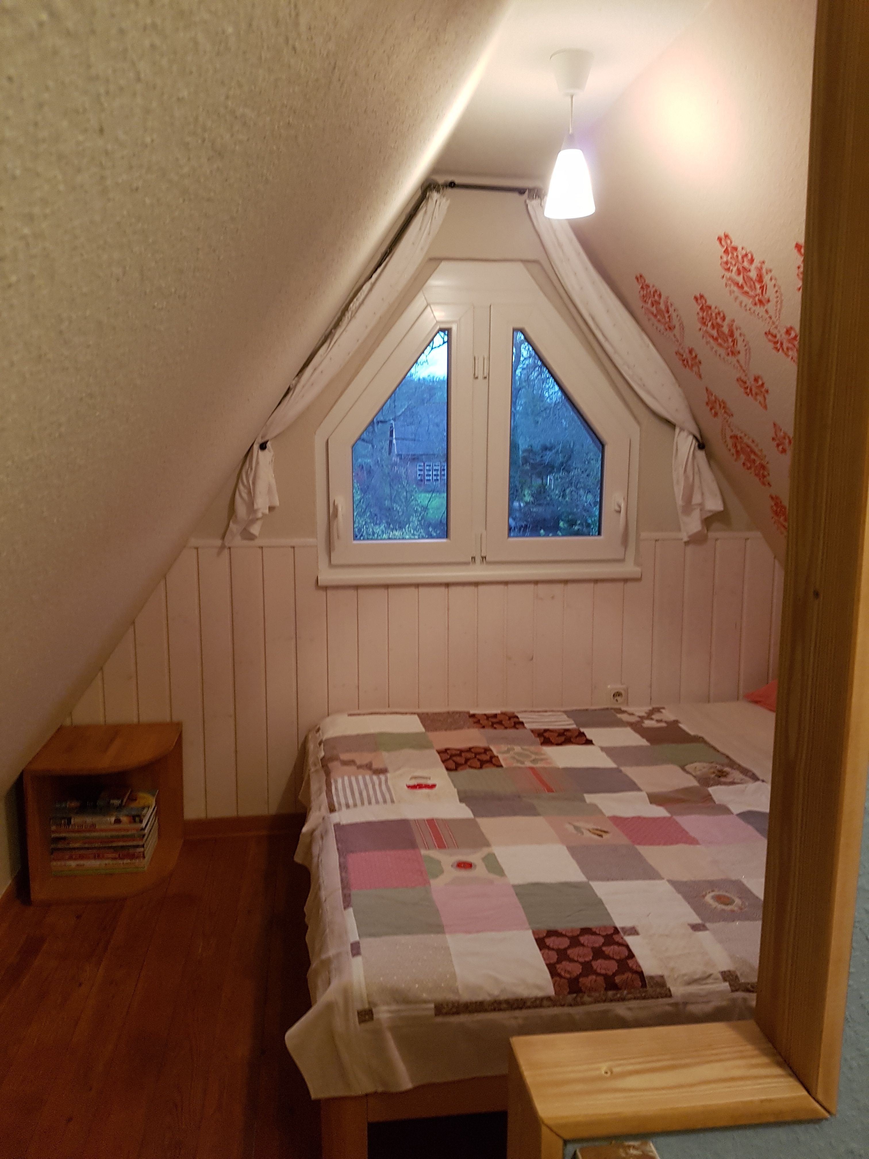 Aufgrund der schmalen Wendeltreppe im Haus und des ungesicherten Gartengrundstücks zum Schlossteich ist das Haus nur für Familien mit Kindern ab 6 Jahren geeignet.