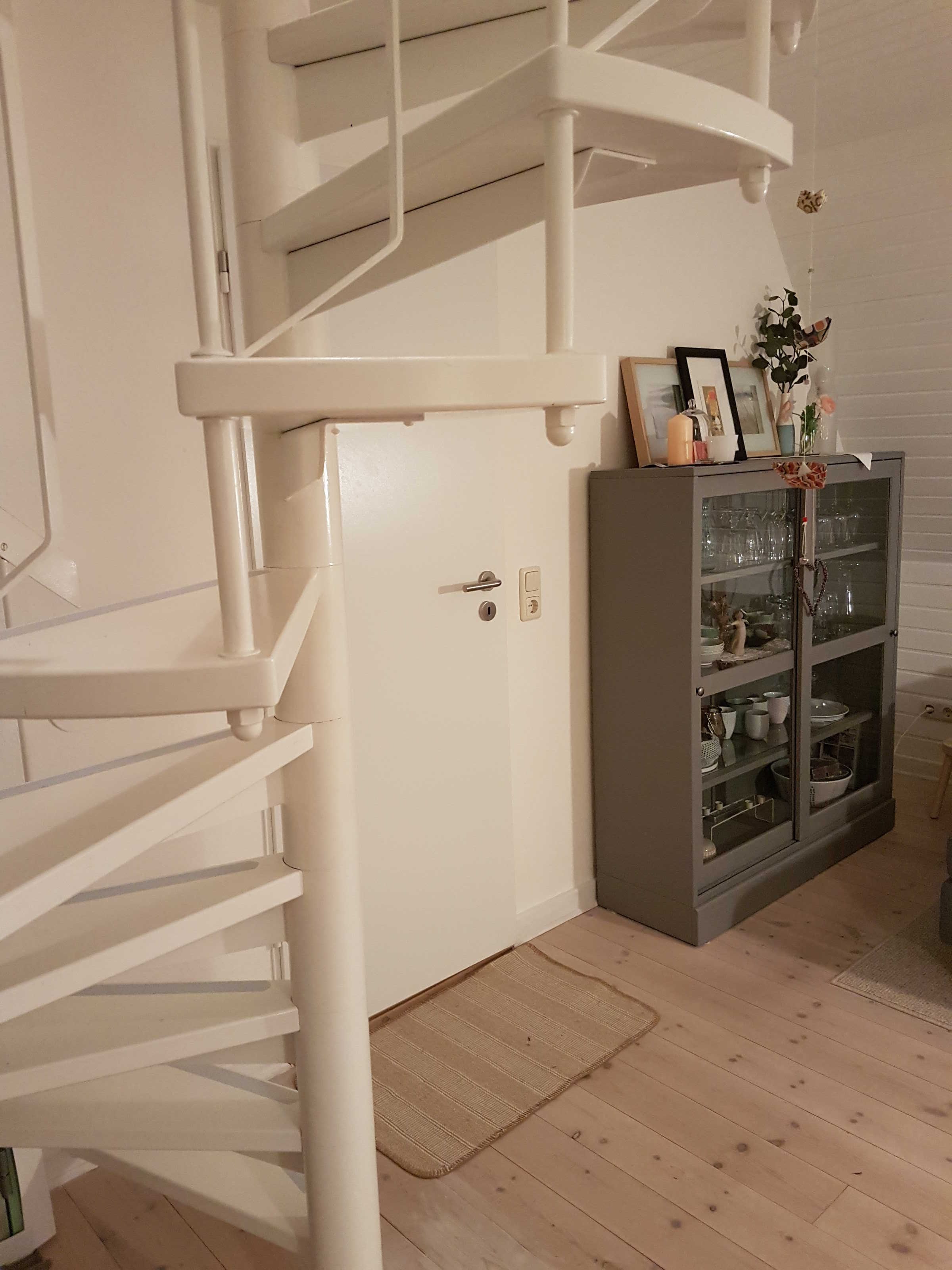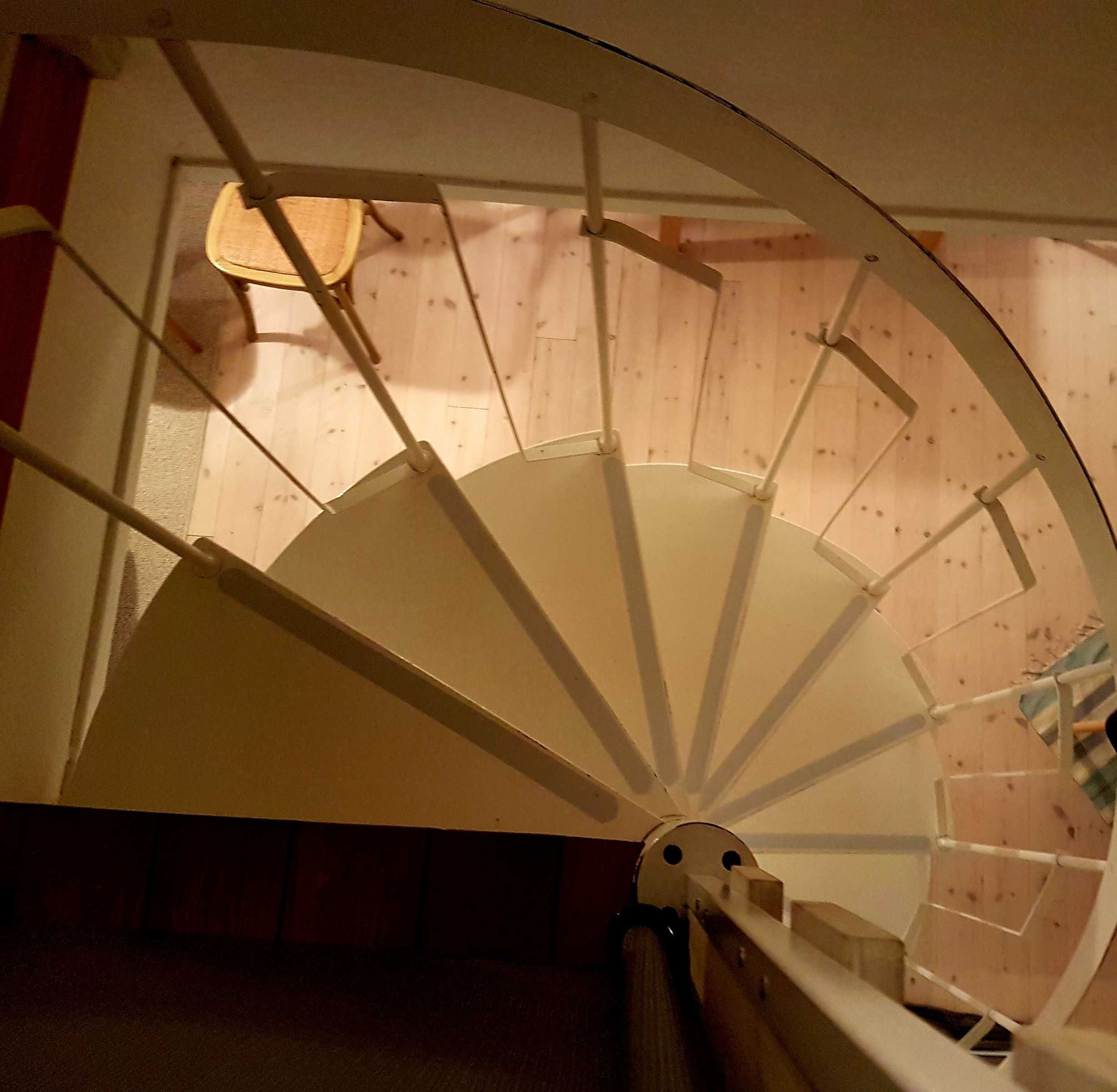 • schmale, steile Wendeltreppe zum Schlafbereich