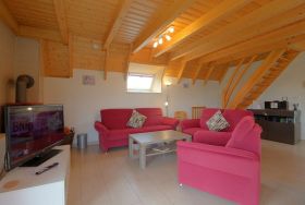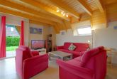Alle Möbel sind modern, neu und farblich aufeinander abgestimmt. Im Untergeschoss befindet sich der Wohnbereich. Bequeme Polstermöbel, ein großer Esstisch, Deckenfluter ein großer 42-Zoll Flachbildschirm inklusive Sky sowie kostenloses Internet laden zum Entspannen ein.