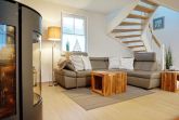 Es erwartet Sie eine hochwertige Innenausstattung mit Echtholzmöbeln. Das gesamte Haus ist gefliest und mit einer modernen Fußbodenheizung ausgestattet. Aufgrund des Kaminofens, der Sauna und der großen Wohnfläche ist das Haus ideal für einen Ganzjahresurlaub an der mecklenburgischen Ostsee geeignet. Im Erdgeschoss bietet das großzügige Wohnzimmer mit offener Küche und Essbereich ausreichend Platz und Komfort für die ganze Familie. Die integrierte Küche ist voll ausgestattet und beinhaltet einen Backofen mit Cerankochfeld, einen Kühlschrank mit Gefrierfach, einen Geschirrspüler, Kaffeemaschine, Toaster und einen Wasserkocher. Ein Flach-TV und Stereoanlage/DVD-Player bieten Unterhaltung. Im Wohnbereich steht ein Kaminofen, der wohlige Wärme in den kalten Jahreszeiten schenkt. Kaminholz ist vorhanden. Der Essbereich bietet Platz für 6 Personen. Für die kleinen Gäste steht ein Kinderhochstuhl, Babybadewanne und auf Anfrage ein Kinderreisebett zur Verfügung. Weiterhin befinden sich im EG ein Gäste WC, eine Sauna mit Komfortdusche und ein Hauswirtschaftsraum mit Waschmaschine, Bügelbrett und Bügeleisen, Staubsauger etc..