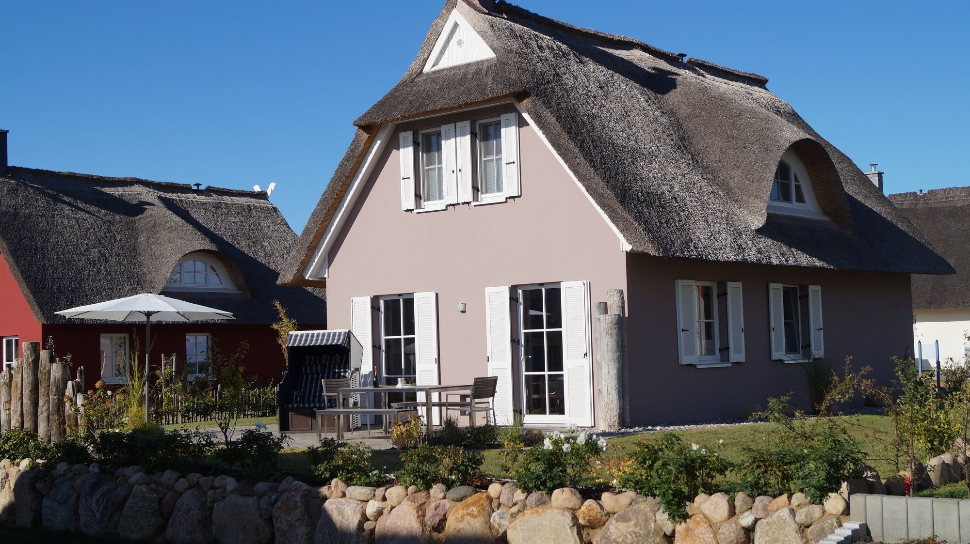 Das Reetdachhaus befindet sich in der neuen Ferienhaussiedlung De Poeler Drift im Erholungsort Zierow.