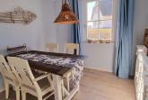 Es ist im nordischen Stil liebevoll eingerichtet. Das Erdgeschoss ist großzügig gestaltet. Im Wohnbereich ist die moderne Küchenzeile integriert. Sie ist hochwertig mit Geschirrspüler, Induktionsherd und vielen weiteren Extras ausgestattet. Ein schnelles Frühstück kann am Küchentresen eingenommen werden. Das separate Esszimmer ist ein kleines Highlight zu den anderen Reethäusern im Ferienhausgebiet. Hier können Sie ganz gemütlich Speisen oder Spielabende erleben. Des Weiteren ist im Erdgeschoss das Gäste-WC und der Hauswirtschaftsraum mit Waschmaschine und Wäschetrockner und Putzutensilien.