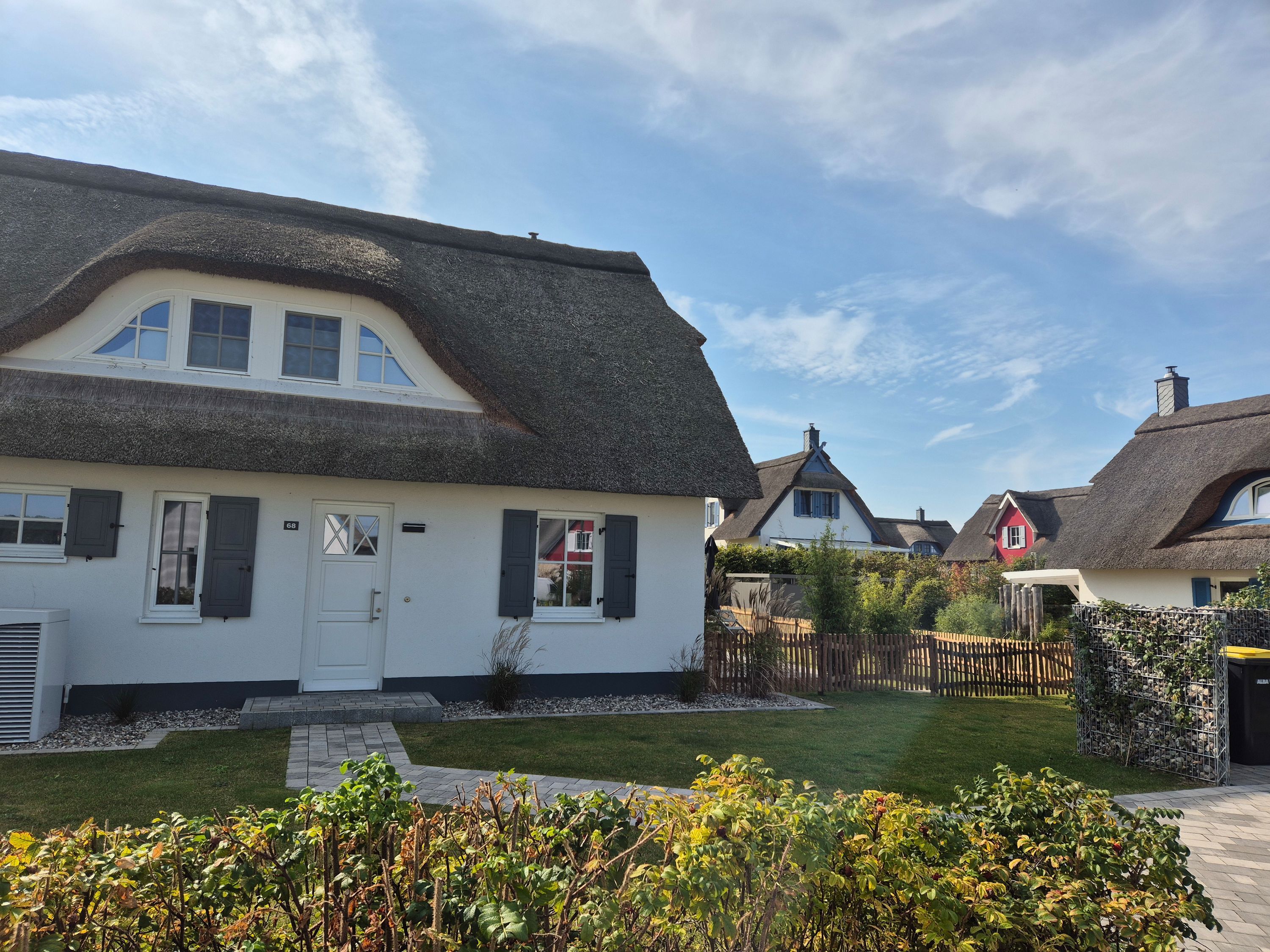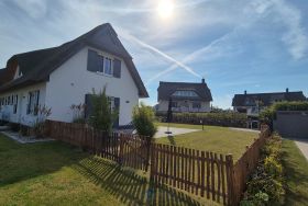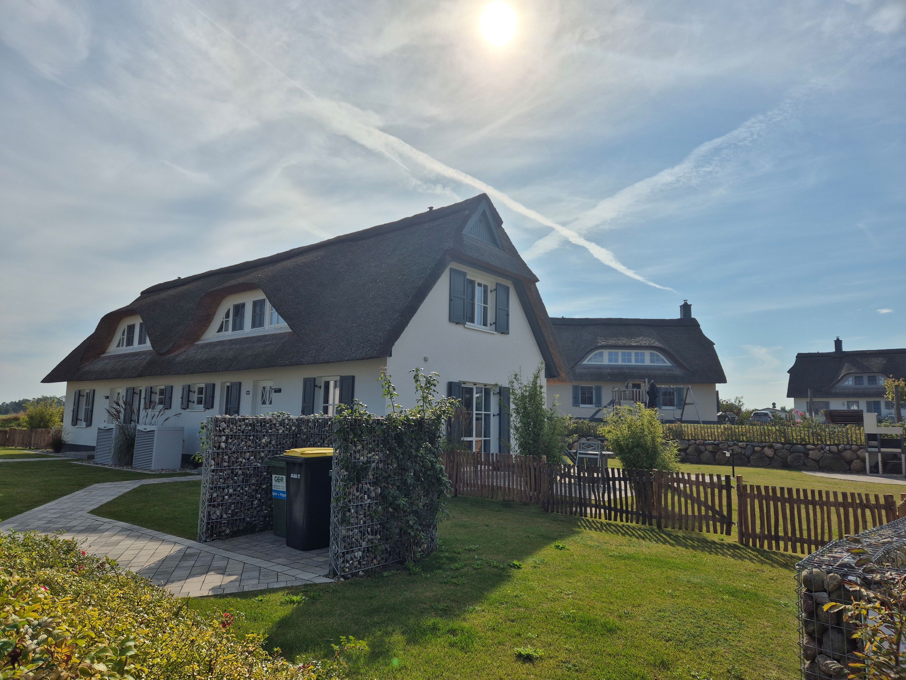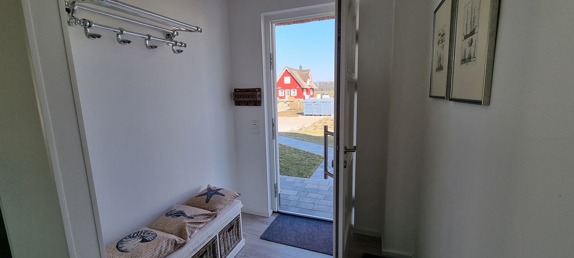 Willkommen im Haus Strandhafer - Das Doppelferienhaus unter Reet befindet sich am Rand des Reethausgebietes De Poeler Driftmit einem wundervollen Blick über die Wiesen und Felder zur Wismarbucht.