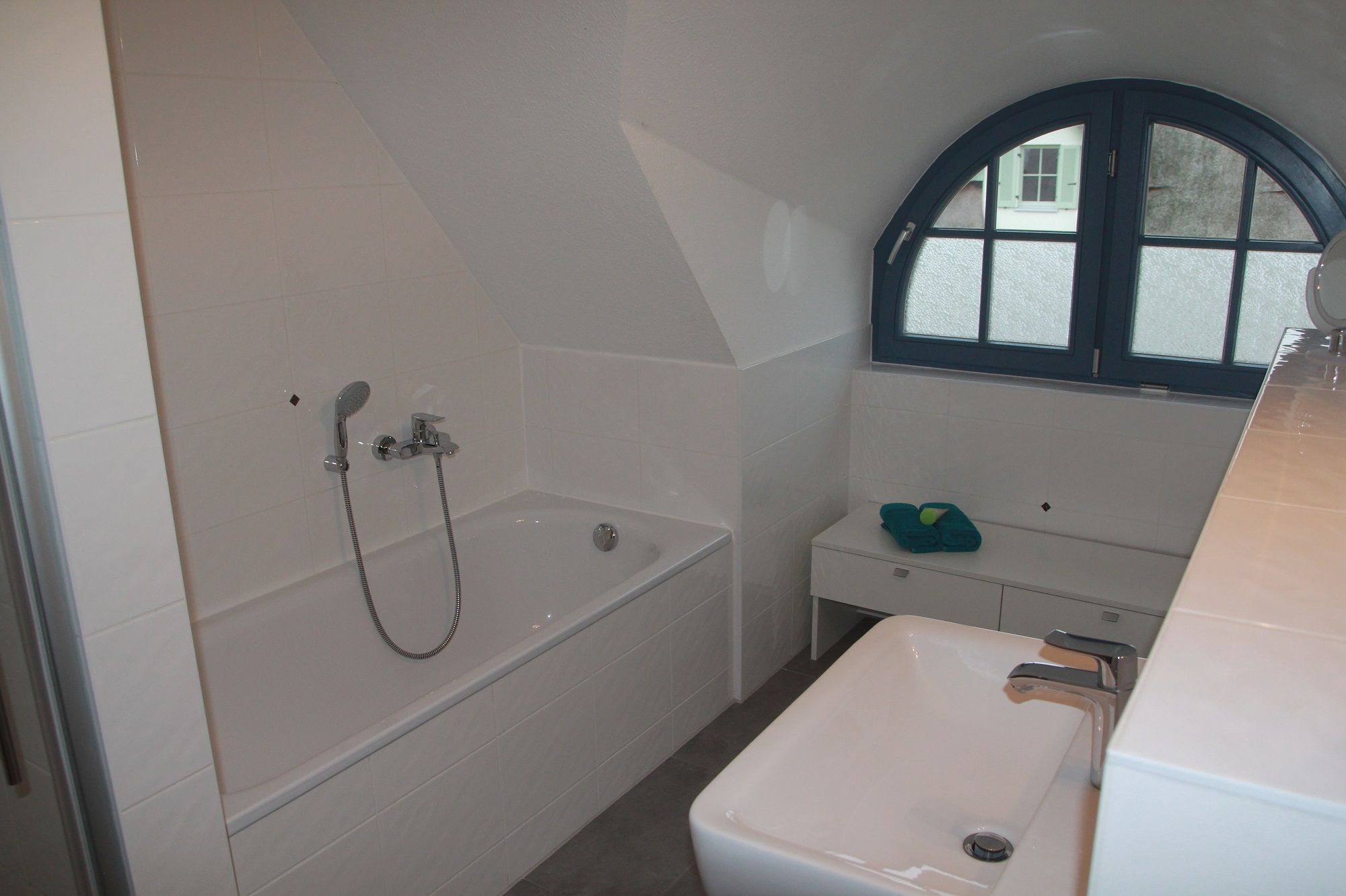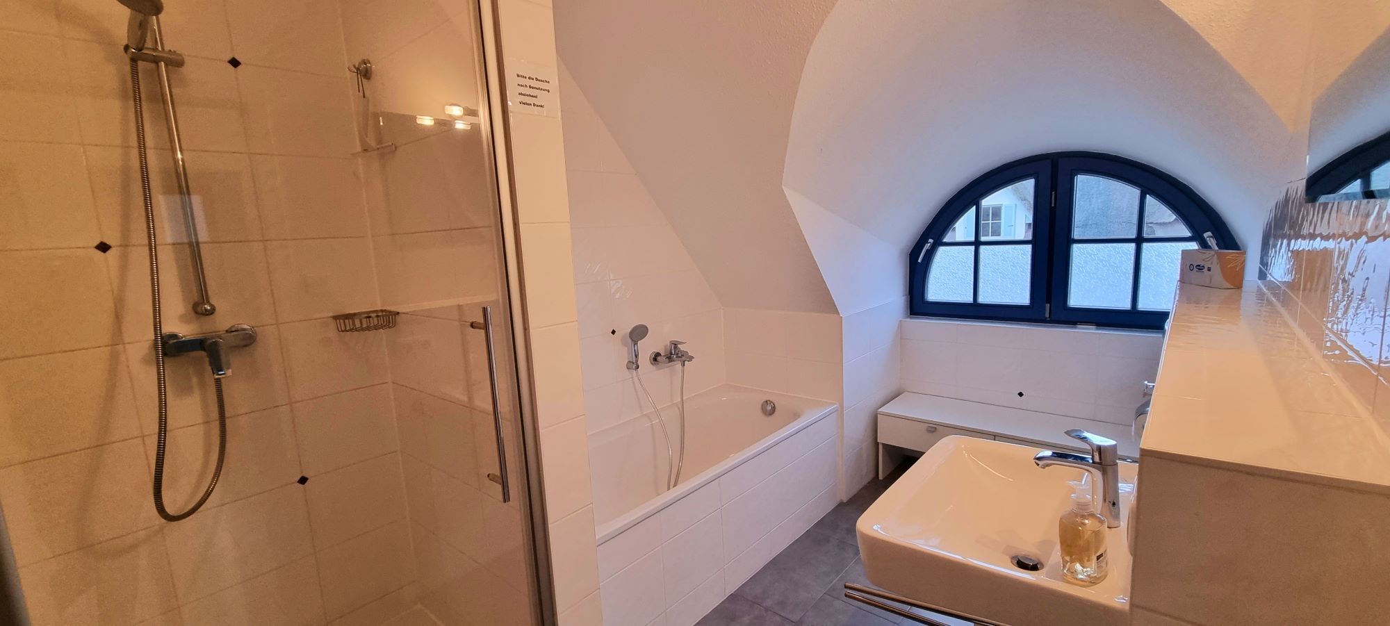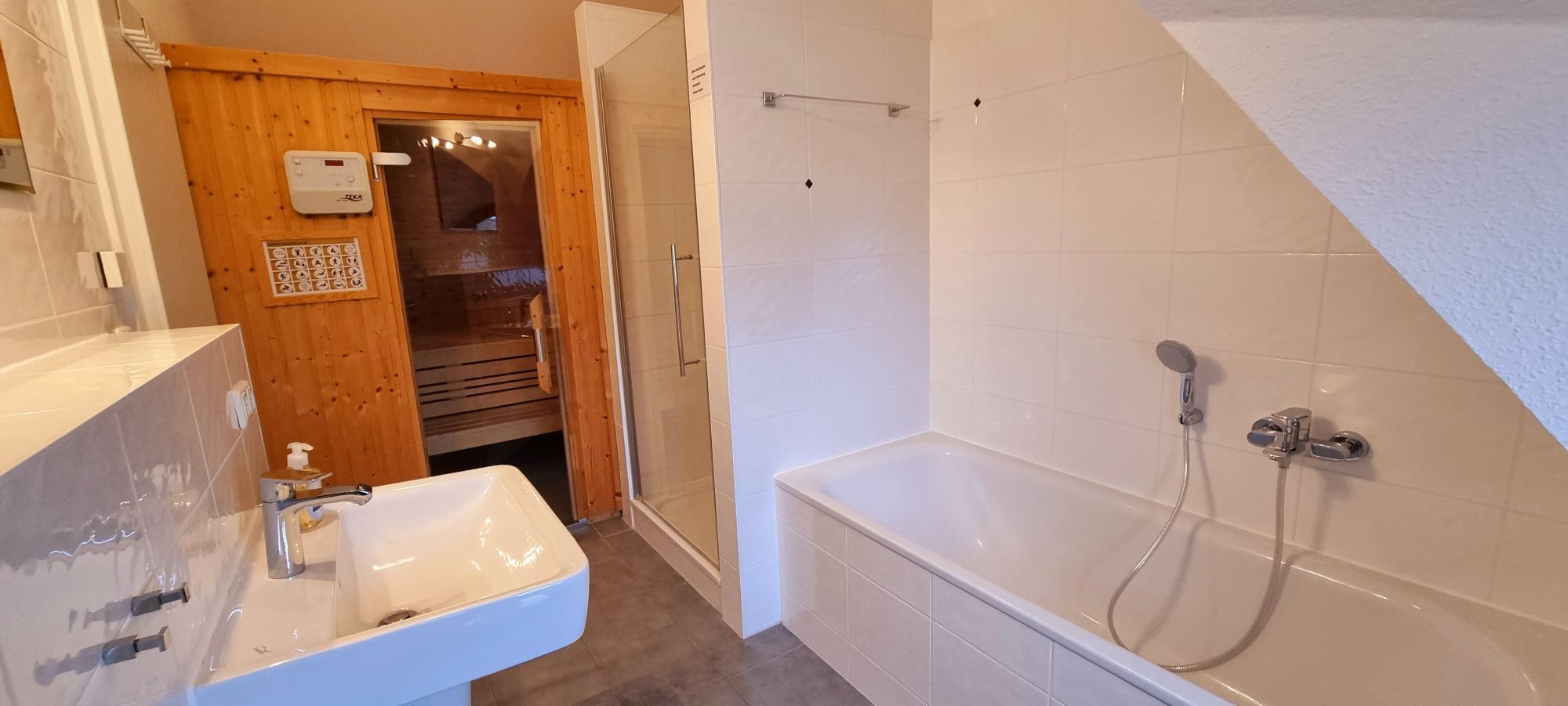 Im Obergeschoss befinden sich 2 weitere Schlafzimmer und ein Vollbad mit Badewanne, Dusche und Sauna.