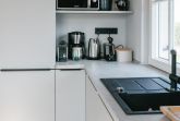 Die Küche fügt sich optisch zurückhaltend nahtlos in den Wohnraum ein und bietet Alles, was Sie auch von Zuhause kennen: Einen großen Kühlschrank, einen separaten Gefrierschrank, einen Induktionsherd sowie Mikrowelle, Nespresso-Maschine, Kaffeemaschine, Toaster, Wasserkocher (mit Temperaturwahl). Ergänzend und besonders für Familien interessant sind Waffeleisen, Sandwichmaker, Stabmixer sowie Kindergeschirr, Frischhaltedosen, Kuchenformen, Plätzchen-Ausstecher etc.