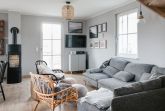Der gemütliche Sitzbereich bildet mit einem großen Sofa mit extra Sitztiefe, bequemen Korbsesseln und Sitzpoufs die Basis für entspannte Abende. Smart-TV und Blue-Ray Player sind selbstverständlich vorhanden.