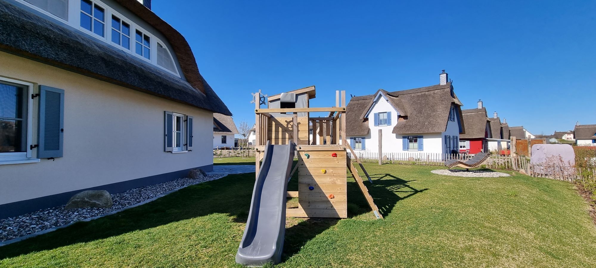Unser Sommerhuus liegt auf einem 800m2 großen Grundstück welches komplett eingefriedet ist und ebenfalls viele Möglichkeiten für Spaß und Entspannung bietet. Im Gartenhaus finden Sie neben dem „Brötchenfahrrad“ Alles, was Sie für Ihren Strandaufenthalt brauchen wie z.B. Picknickdecke, Strandmuschel, Klappstühle, Sandspielzeuge. Für den Transport steht Ihnen ein Bollerwagen bereit. Für aktive Stunden im eigenen Garten nutzen Sie ebenfalls gerne die Sportgeräte wie Federball, Slackline, Beachball oder Fussballtore oder entspannen in der Hängematte oder in den Sitzsäcken. Dabei können Sie Ihren Kindern auf dem Klettergerüst mit Schaukel und Rutsche beim Spielen Zusehen. Für die ganz Kleinen kann an heißen Tagen auch das Planschbecken eine Abkühlung abseits der Ostsee bieten.