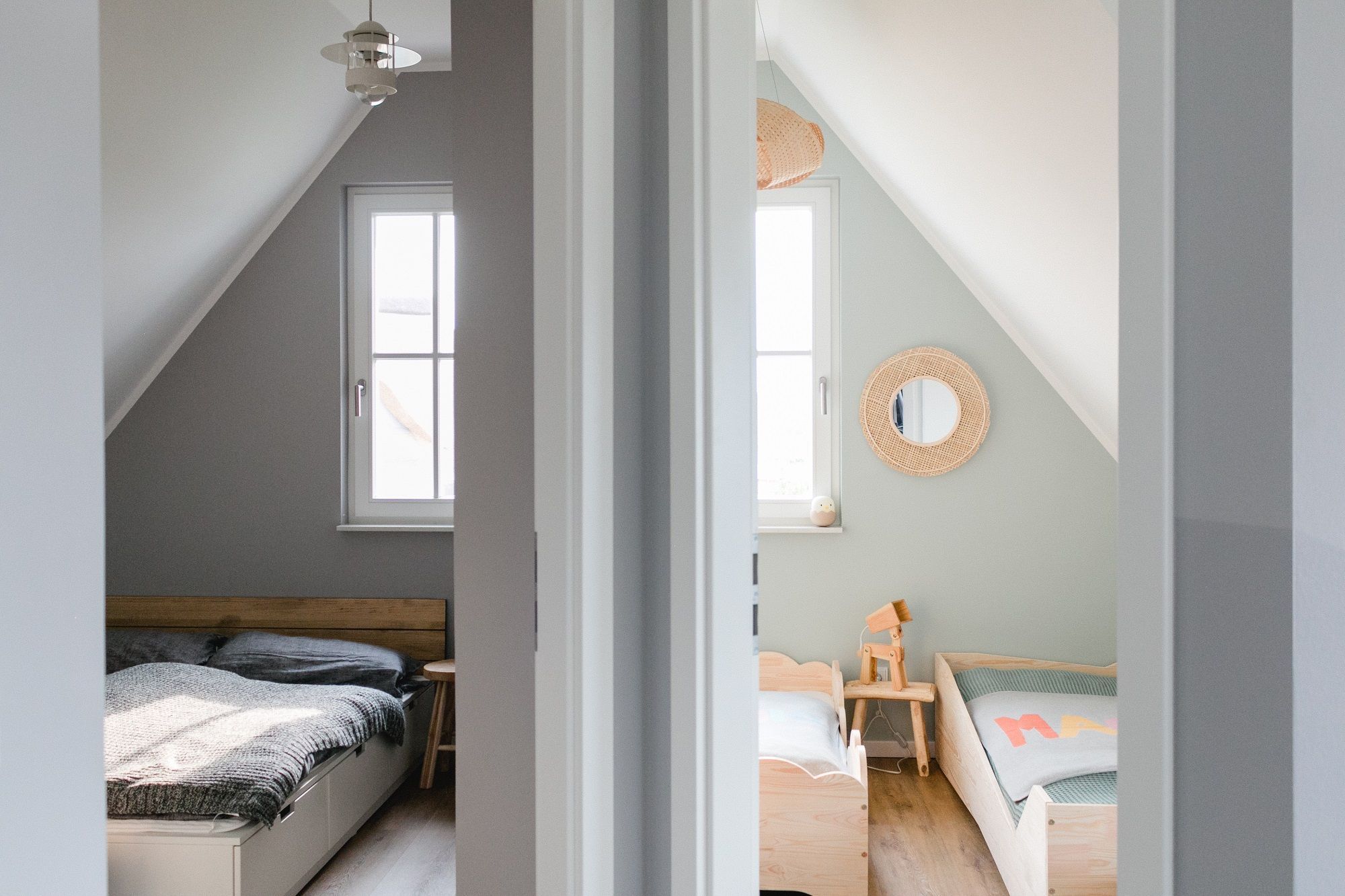 Angrenzend finden Sie das Kinderzimmer mit 3 Einzelbetten von 1,40m, 1,60m und 2,00m Länge so dass hier 3 Kinder oder auch 2 Kinder und 1 Erwachsener bequem Schlafen können. An genügend Stauraum für Kleidung und Spielzeug sowie ansprechende Details wie z.B. eine Bücherkiste haben wir auch hier gedacht.
