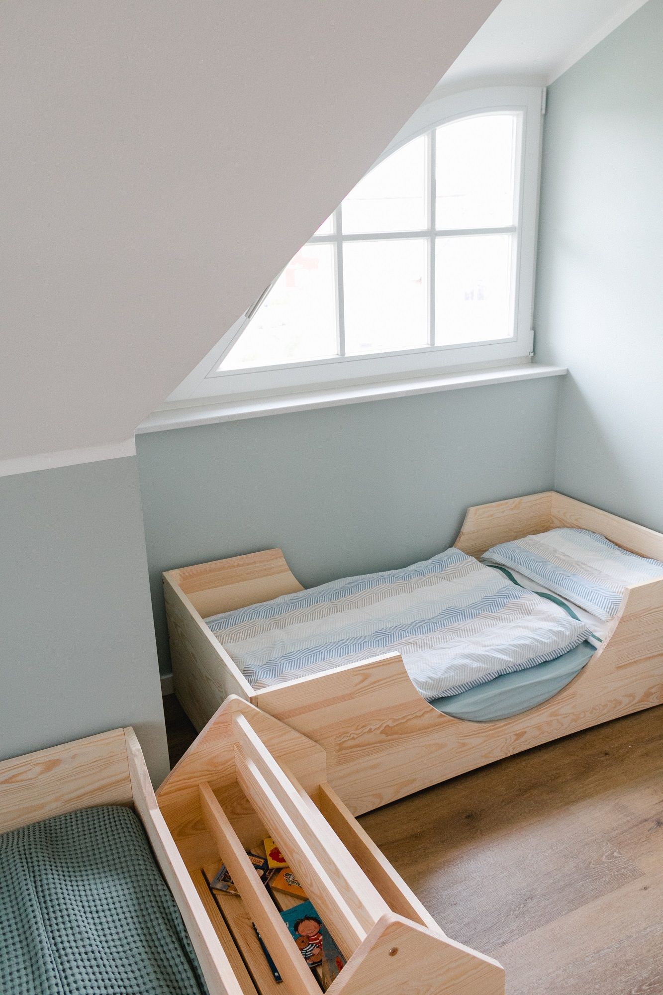 Angrenzend finden Sie das „Kinderzimmer“ mit 3 Einzelbetten von 1,40m, 1,60m und 2,00m Länge so dass hier 3 Kinder oder auch 2 Kinder und 1 Erwachsener bequem Schlafen können. An genügend Stauraum für Kleidung und Spielzeug sowie ansprechende Details wie z.B. eine Bücherkiste haben wir auch hier gedacht.