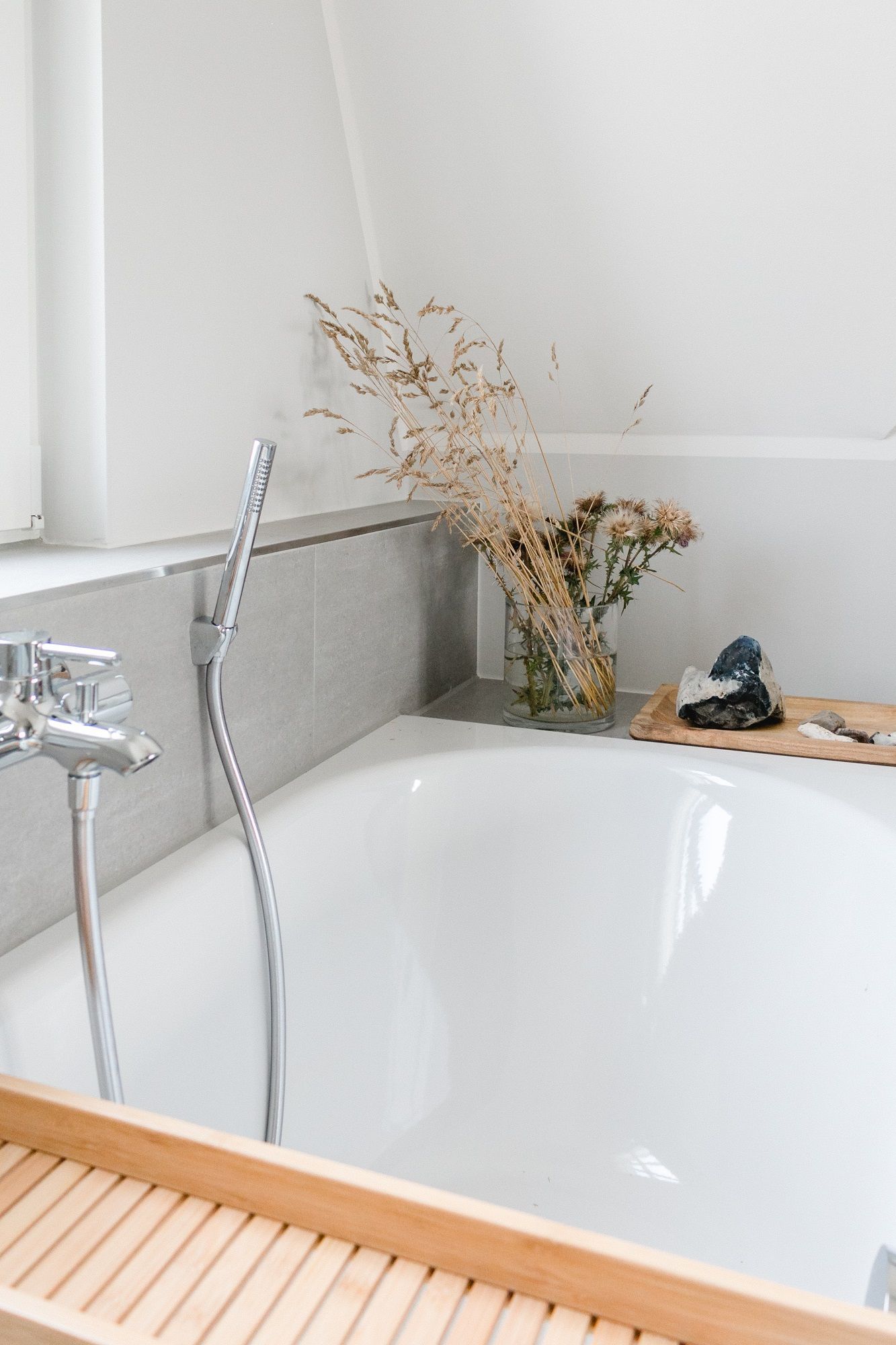 Das gemütliche Badezimmer im ersten Stock lädt mit Badewanne und zur Entspannung ein. Auch von hier haben Sie freien Blick auf die umliegenden Felder.