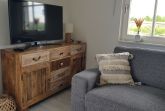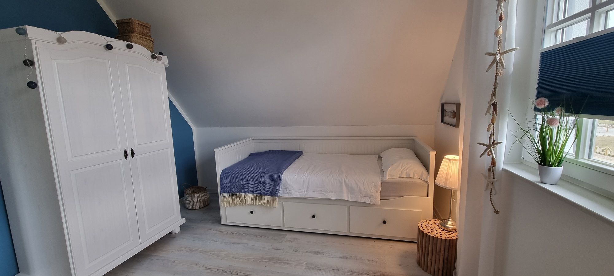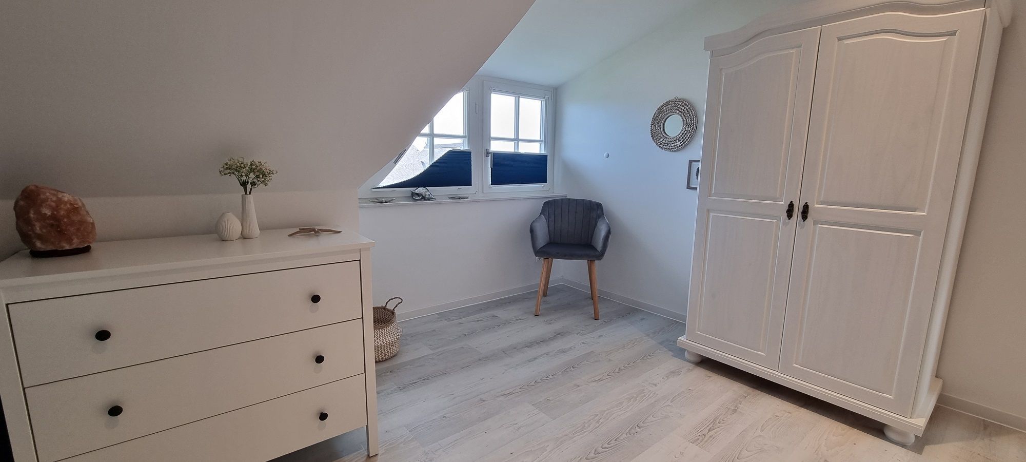 Die Schlafzimmer sind mit einem Doppelbett und zwei Einzelbetten und viel Staumöglichkeiten eingerichtet. Bei Anreise sind die Betten bereits bezogen und Handtücher liegen bereit.
