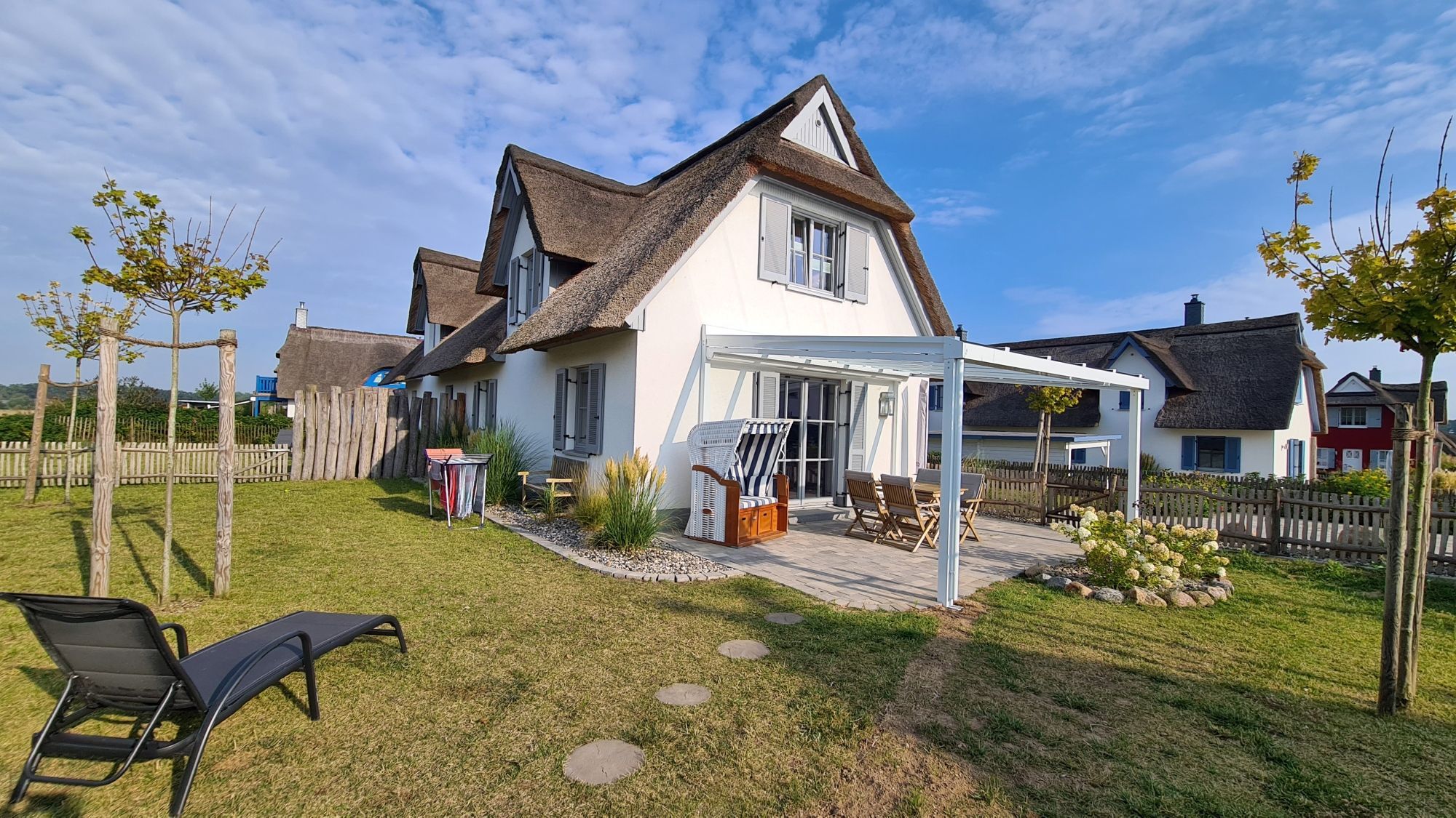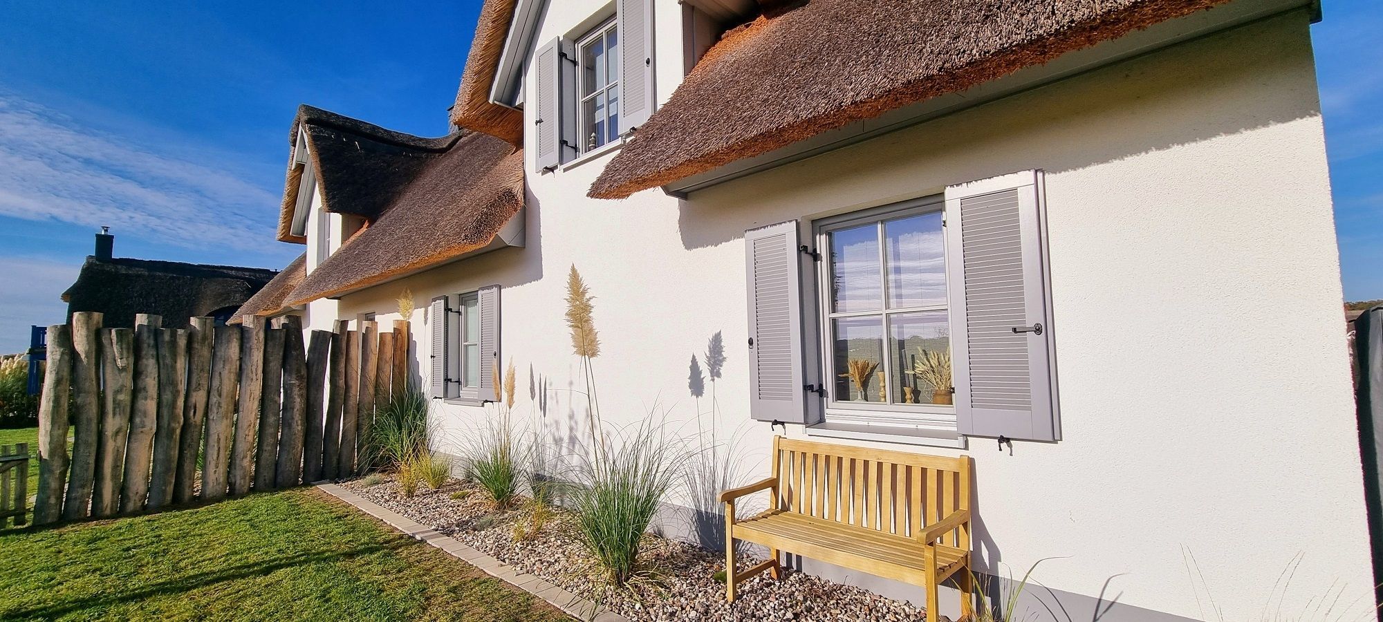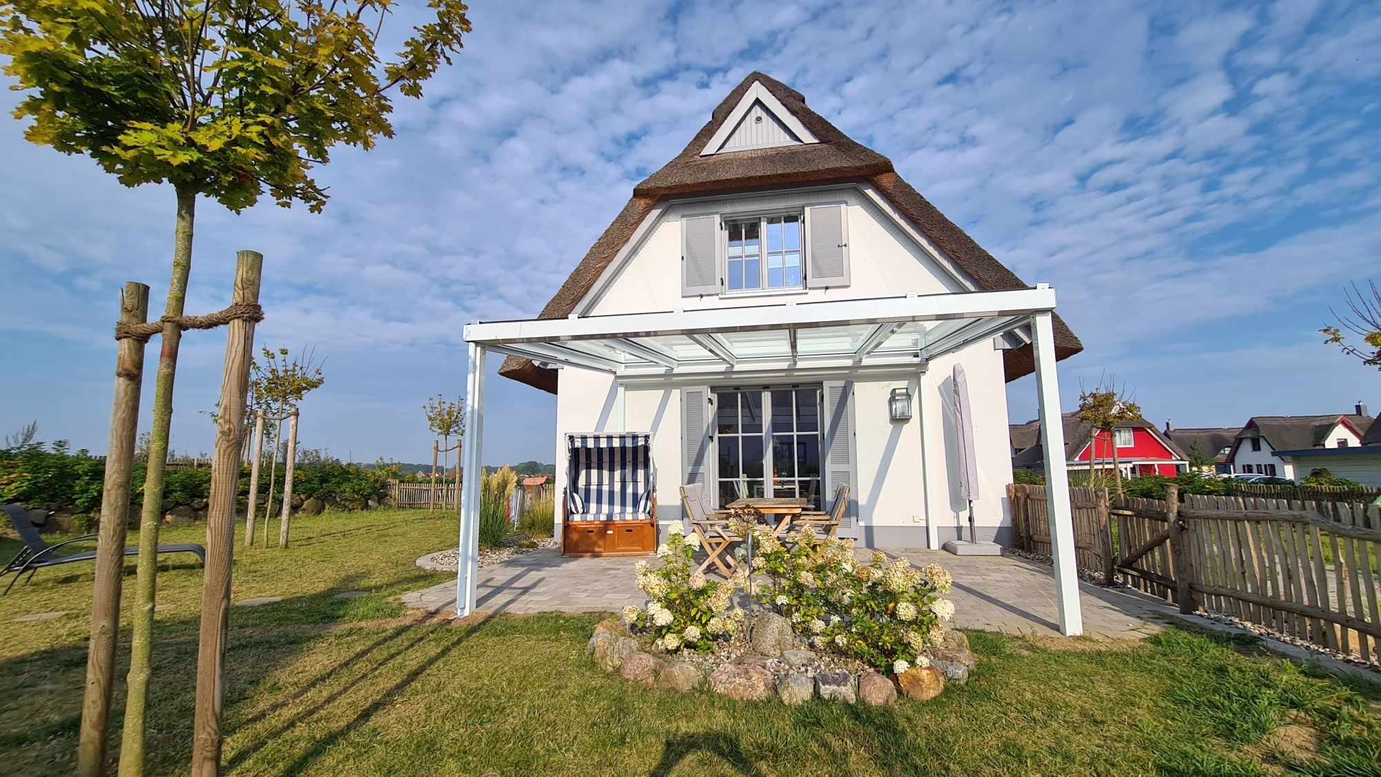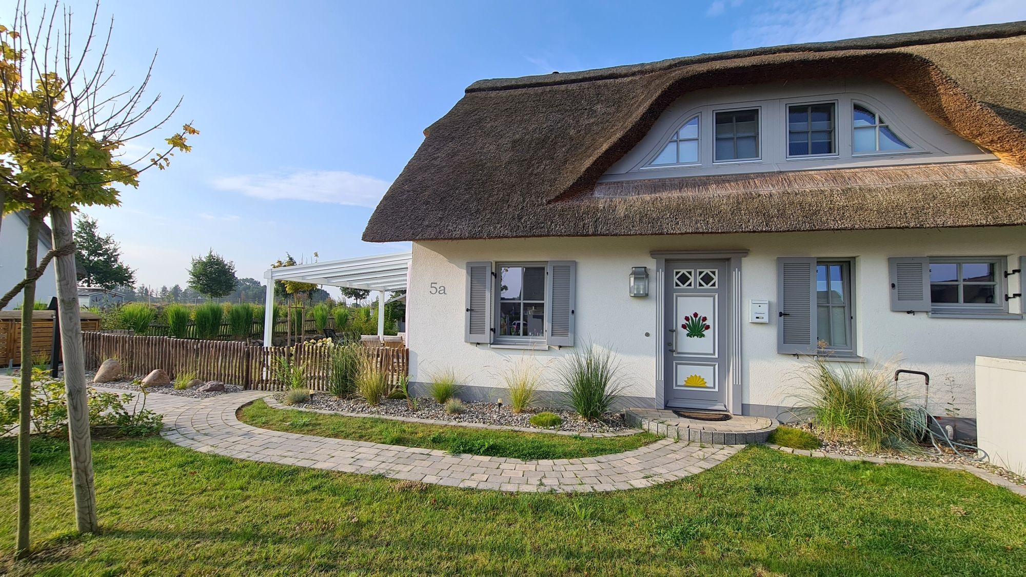 Zum Nachbarhaus wurde ein Sichtschutz durch Rundhölzer hergestellt, denn Intimsphäre ist auch im Urlaub wichtig. Sollten befreundete Familien das Nachbarhaus Majupani nutzen, kann das Gartentor für mehr Miteinander geöffnet werden. Das Reethaus Strandmuschel liegt ruhig am Rande des Feriengebiets De Poeler Drift in Zierow. Kein Durchgangsverkehr stört die Ruhe und die Aussicht über die grünen Felder. Kinder können ungestört auf dem Spielplatz der gemeinsamen Grünfläche toben und zum familienfreundlichen, flach abfallenden Sandstrand gelangen Sie abseits vom Autoverkehr über einen Fußweg (ca. 800 Meter). Wer Kultur und Abwechslung sucht, freut sich über die nahegelegenen Städte Wismar (8 km), Schwerin (35 km), Lübeck (70 km) und Rostock (74km).