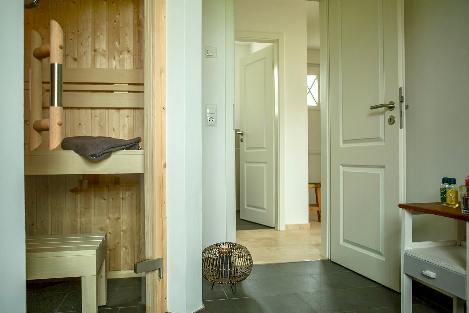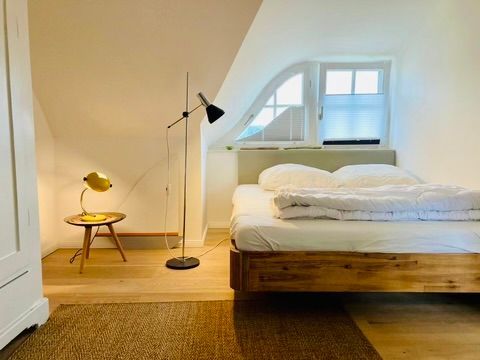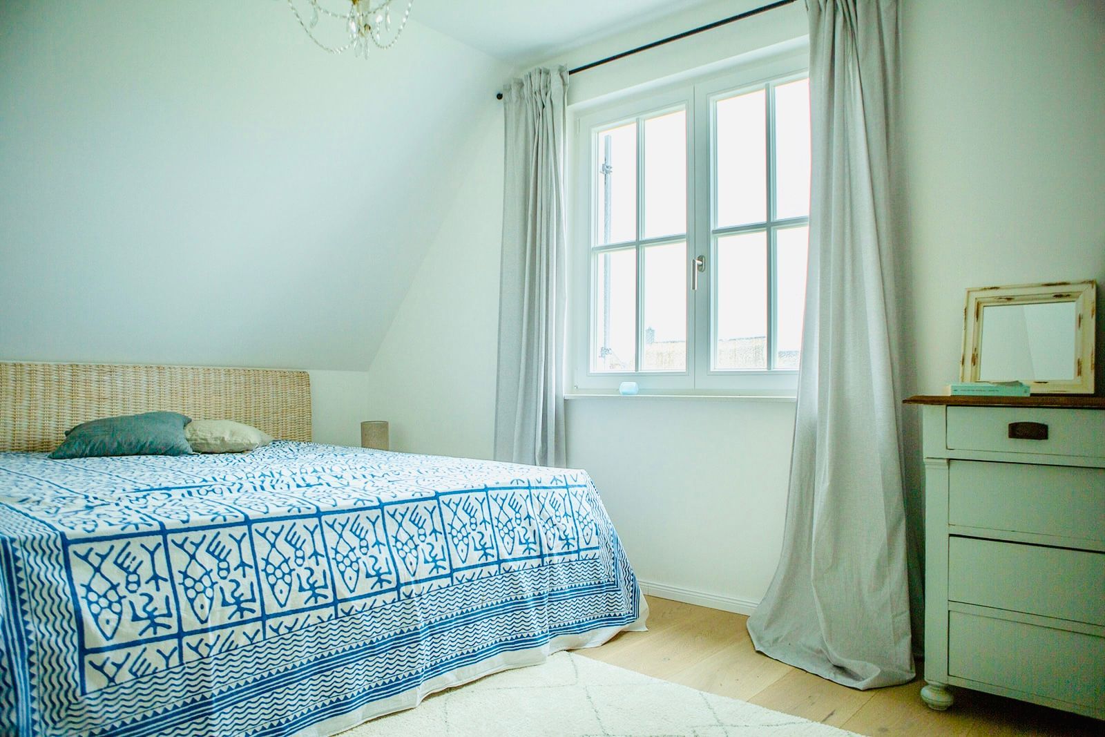 Die Treppe hinauf geht es zu den beiden gemütlichen Schlafzimmern und einem großzügigen Duschbad mit Handtuchheizung. Ein Schlafzimmer ist mit einem 160er Doppelbett ausgestattet, in dem zweiten Schlafzimmer finden Sie ebenfalls ein 160er Doppelbett sowie ein ausziehbares Tagesbett. Insgesamt bietet das Haus Platz für bis zu 4 Erwachsene oder eine Familie mit 3 Kindern.