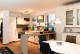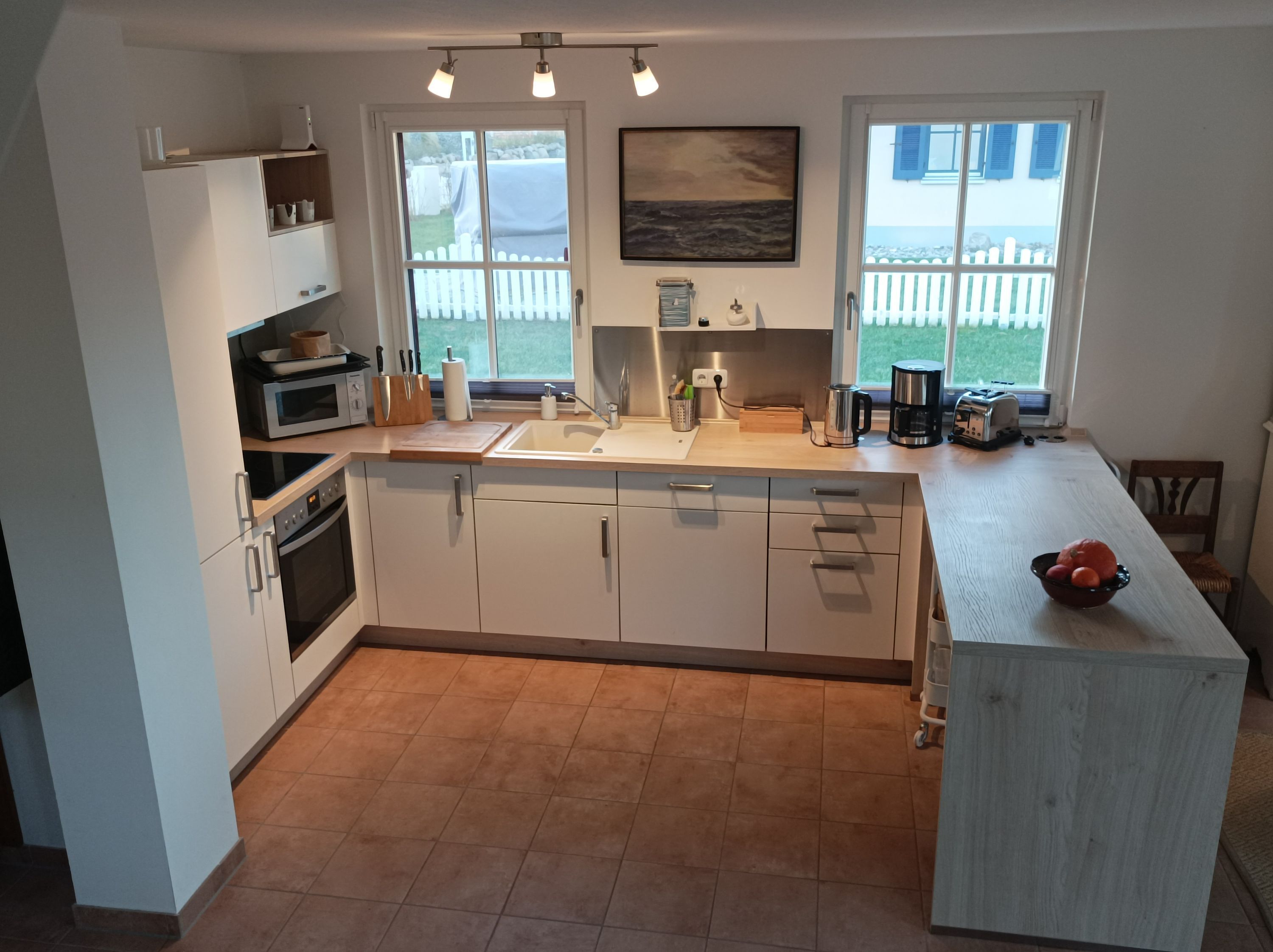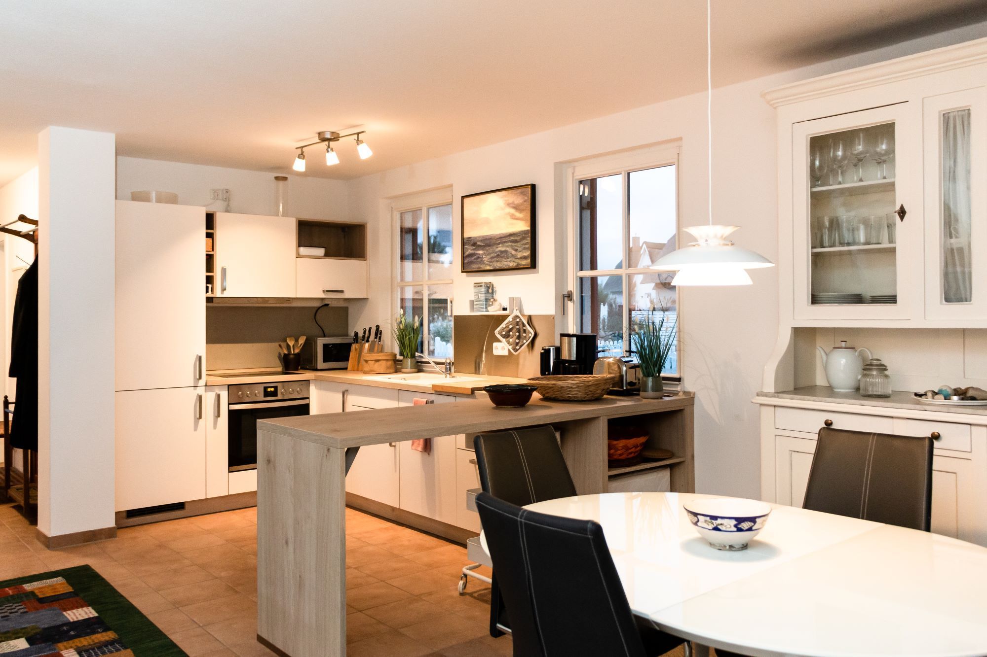 Die moderne, offene Küche ist voll ausgestattet, sodass du alles findest, was du für gemeinsame Kochabende brauchst. Um den Abwasch danach kümmert sich der Geschirrspüler.