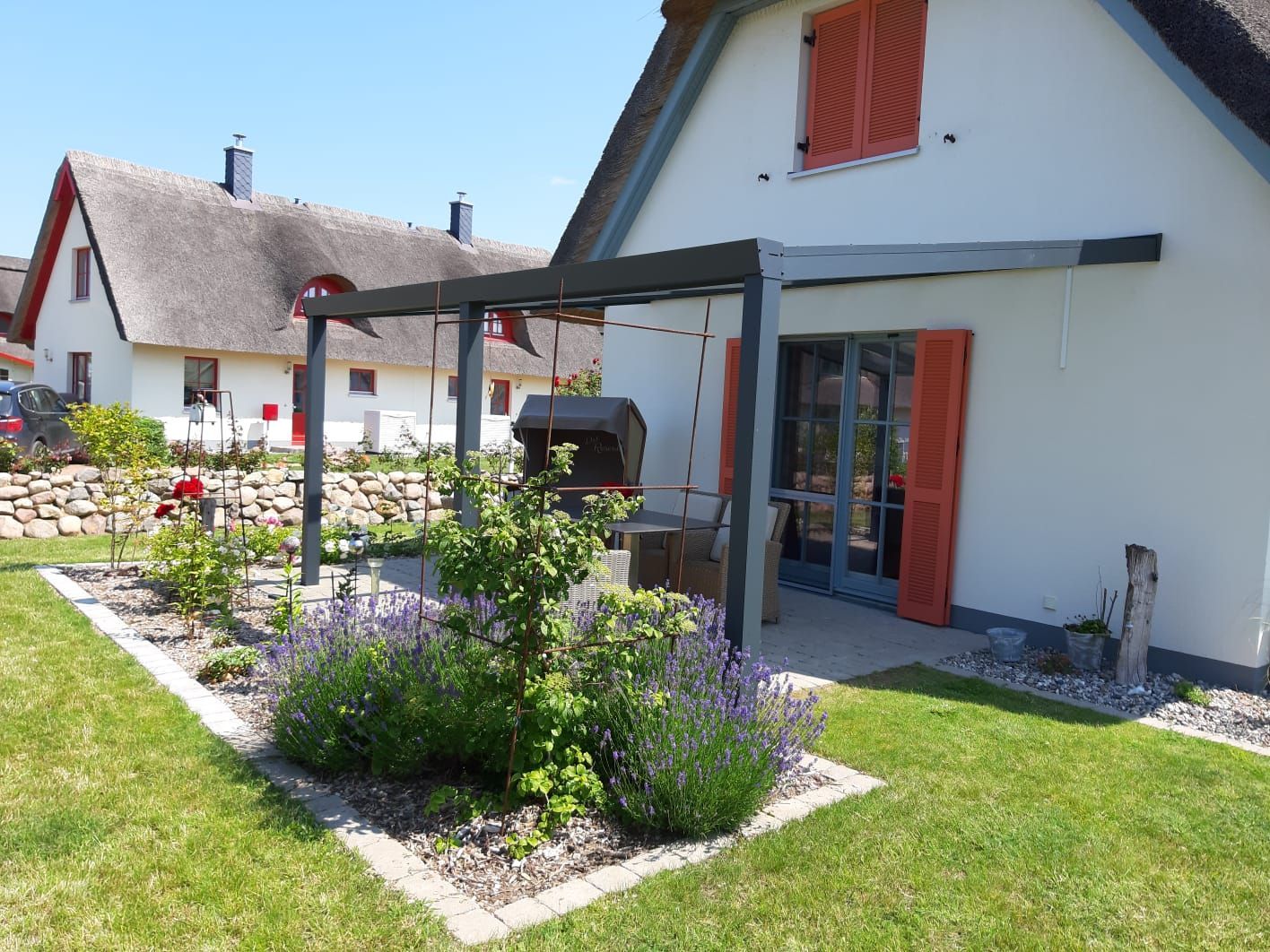460 m² komplett eingezäunter Garten mit Terrassenüberdachung und einem geschütztem Strandkorbplatz, laden zu gemütlichen Grillabende auf der Terrasse ein.