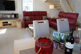 Das Ferienhaus ist eingezäunt und der große sonnige Garten lädt zu gemütlichen Stunden am Haus ein. Genießen Sie Ihren Urlaub in den zwei Strandkörben oder auf der Sonnenliege. Die Gartenmöbel auf der überdachten Terrasse bieten eine schöne Sitzgelegenheit z. B. für ein Frühstück am Morgen. Als kleines Highlight steht eine kleine Zapfanlage im HWR. Lassen Sie den Urlaubstag mit einem frisch gezapften Bier und leckeren Speisen vom Grill ausklingen. Die Terrasse ist mit Sichtschutz abgegrenzt und ein feststehender Grill sowie Abstellschuppen für mitgebrachte Fahrräder stehen bereit. Kleine Strandpiraten können kostenfrei den hauseigenen Bollerwagen nutzen. Im Haus erwartet Sie eine exklusive Ausstattung. Der sehr großzügig und hell gestaltete Wohnraum erstreckt sich über zwei Ebenen auf ca. 97m² und bietet Platz für bis zu 5 Personen. Die moderne Ausstattung des Hauses wird Sie begeistern. Der Essbereich im Wohnzimmer bietet bis zu 5 Personen viel Platz zum Speisen und spielen. Ein Kinderhochstuhl steht für kleine Gäste bereit. Die Küchenzeile ist sehr gut mit Geschirrspüler, Kühlschrank, Herd, Mikrowelle, Nespressomaschine, Waffeleisen und Mixer ausgestattet und besticht durch die Hochglanzoptik. Der Kaminofen bringt an kühleren Tagen wohlige Wärme ins Haus. Nach einem langen Strandspaziergang können Sie in der Sauna mit Dusche entspannen. Auf den beiden Sofas können Sie es sich mit einem Buch oder vor dem schwenkbaren TV gemütlich machen. Viele Bücher, Spiele, Umgebungs- und Radkarten, DVD`s und etwas Kinderspielzeug stehen Ihnen für einen unbeschwerten Urlaub zur Verfügung.