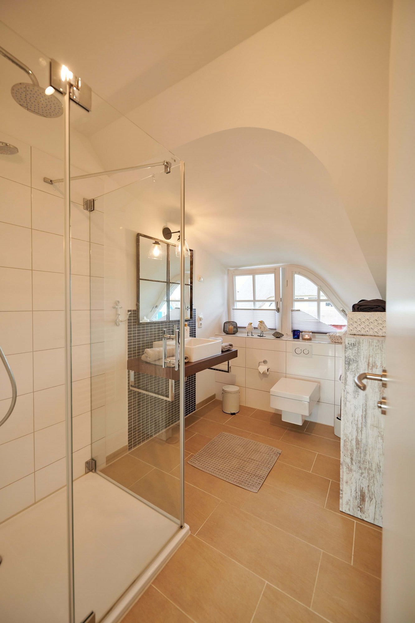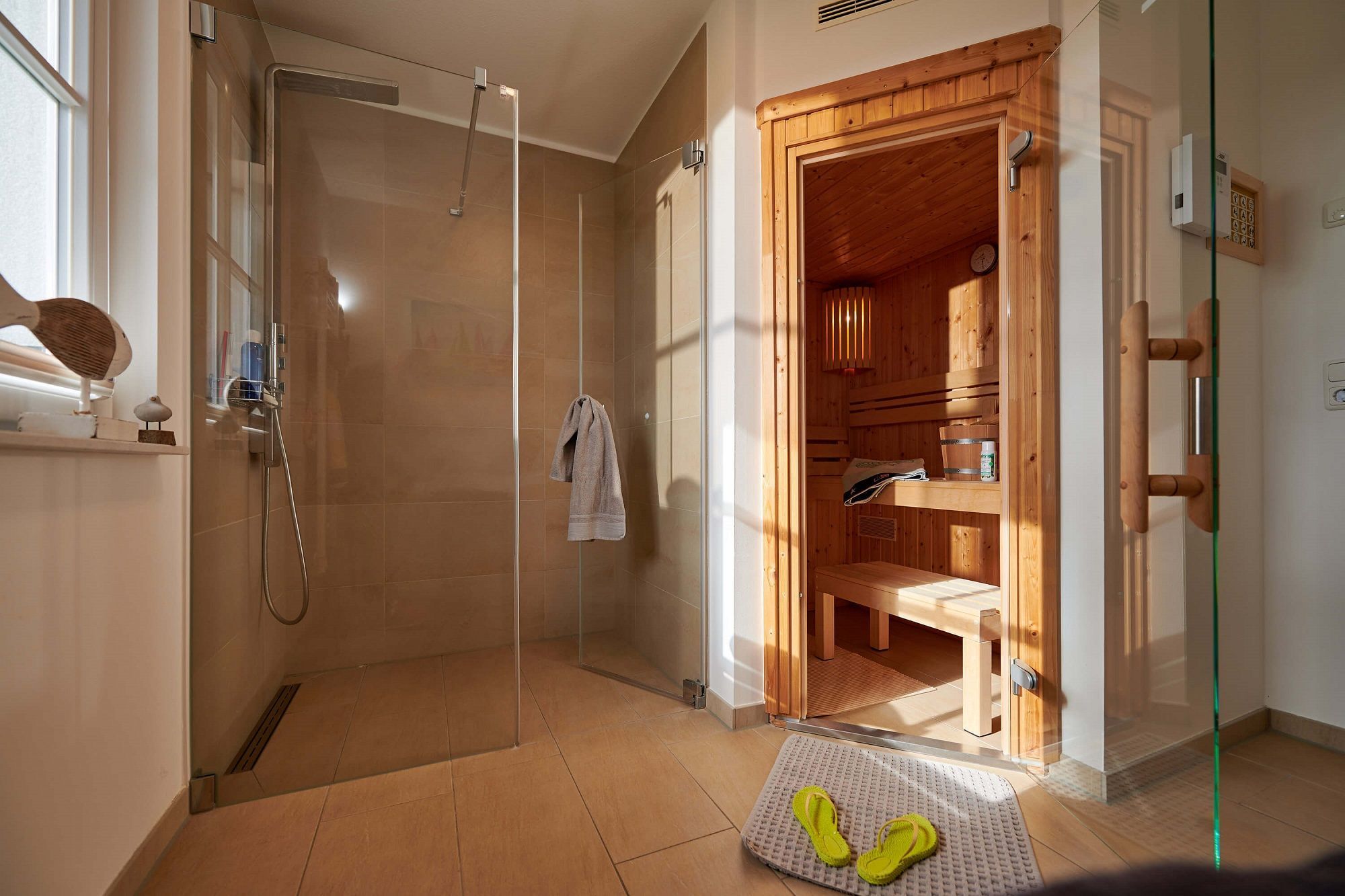 Der massive schwedische Echtholzfußboden und liebevoll ausgesuchte Details bestechen durch Ihre Einzigartigkeit. Die Küche ist modern mit vielen Extras ausgestattet und das von allen seitens sichtbare Kaminfeuer bringt gerade an kälteren Tagen eine wohlige Stimmung ins Haus. Die Sauna ist mit einer Wellnessdusche versehen und bietet angenehmen Platz zum Erholen. Das Gäste-WC mit Tageslicht befindet sich ebenfalls im Erdgeschoss.