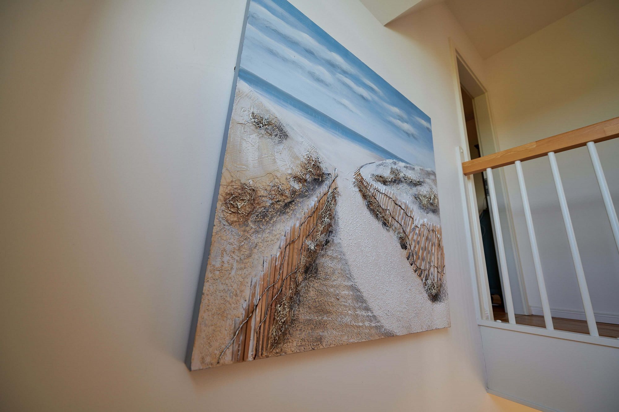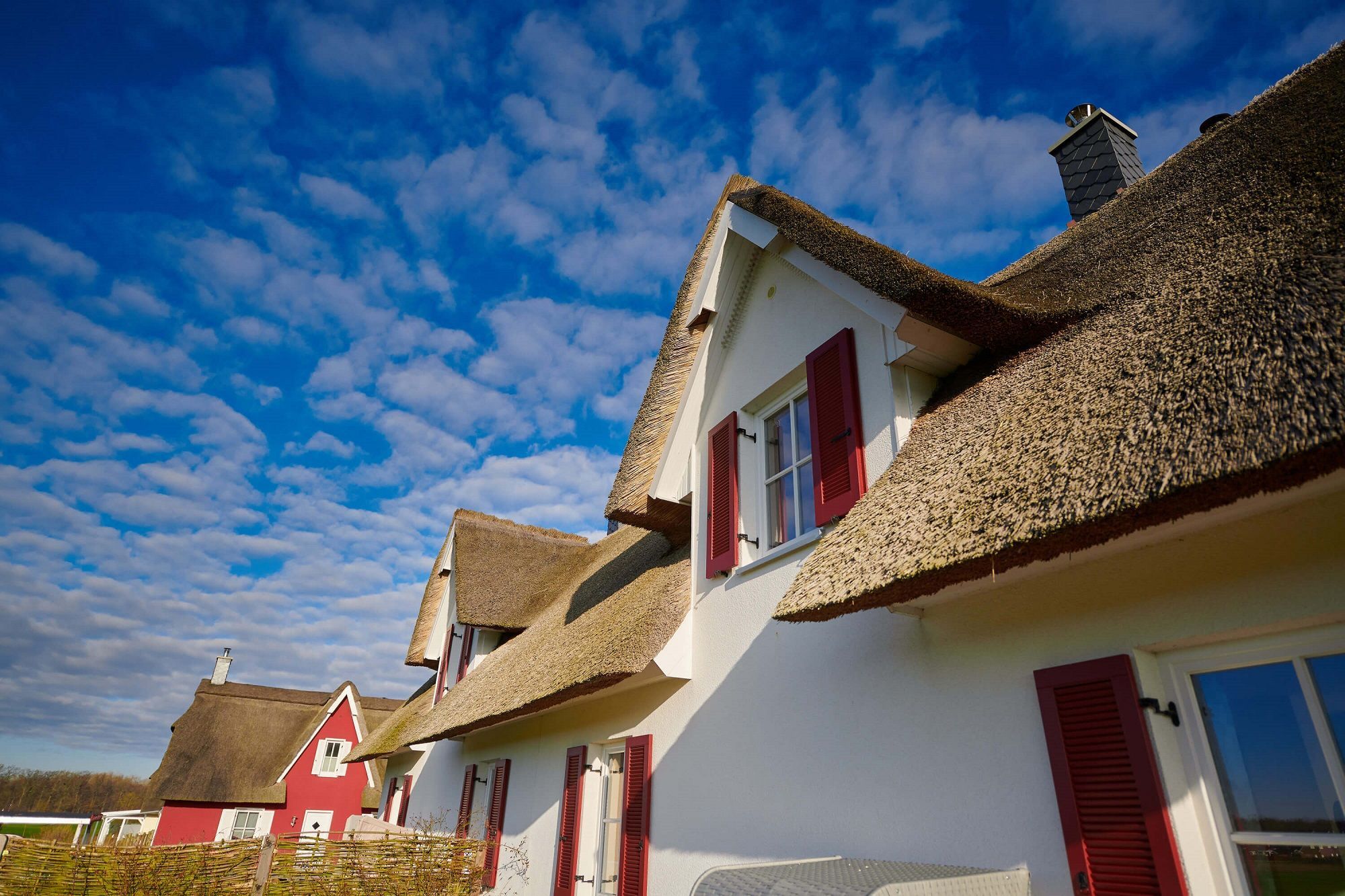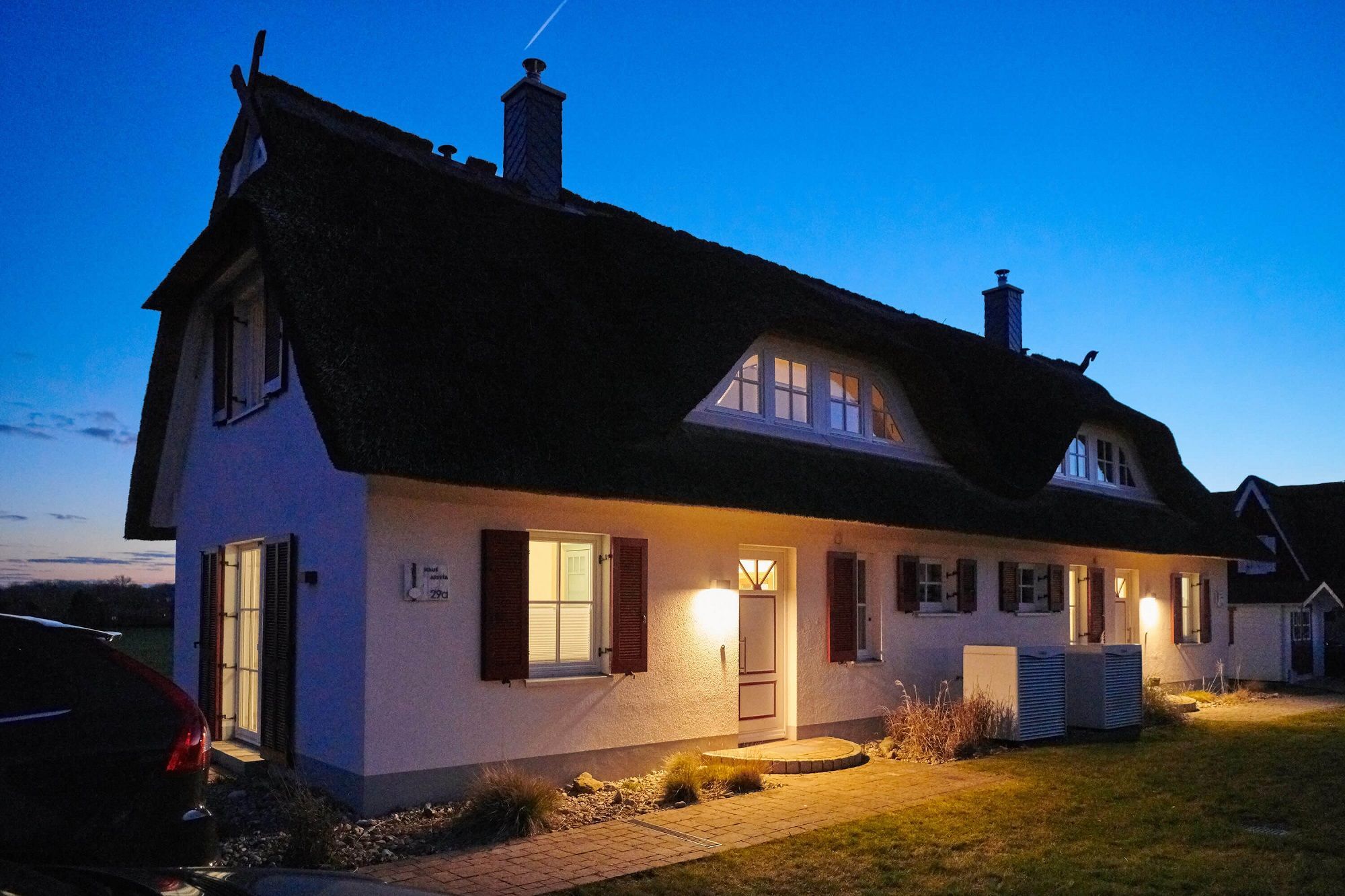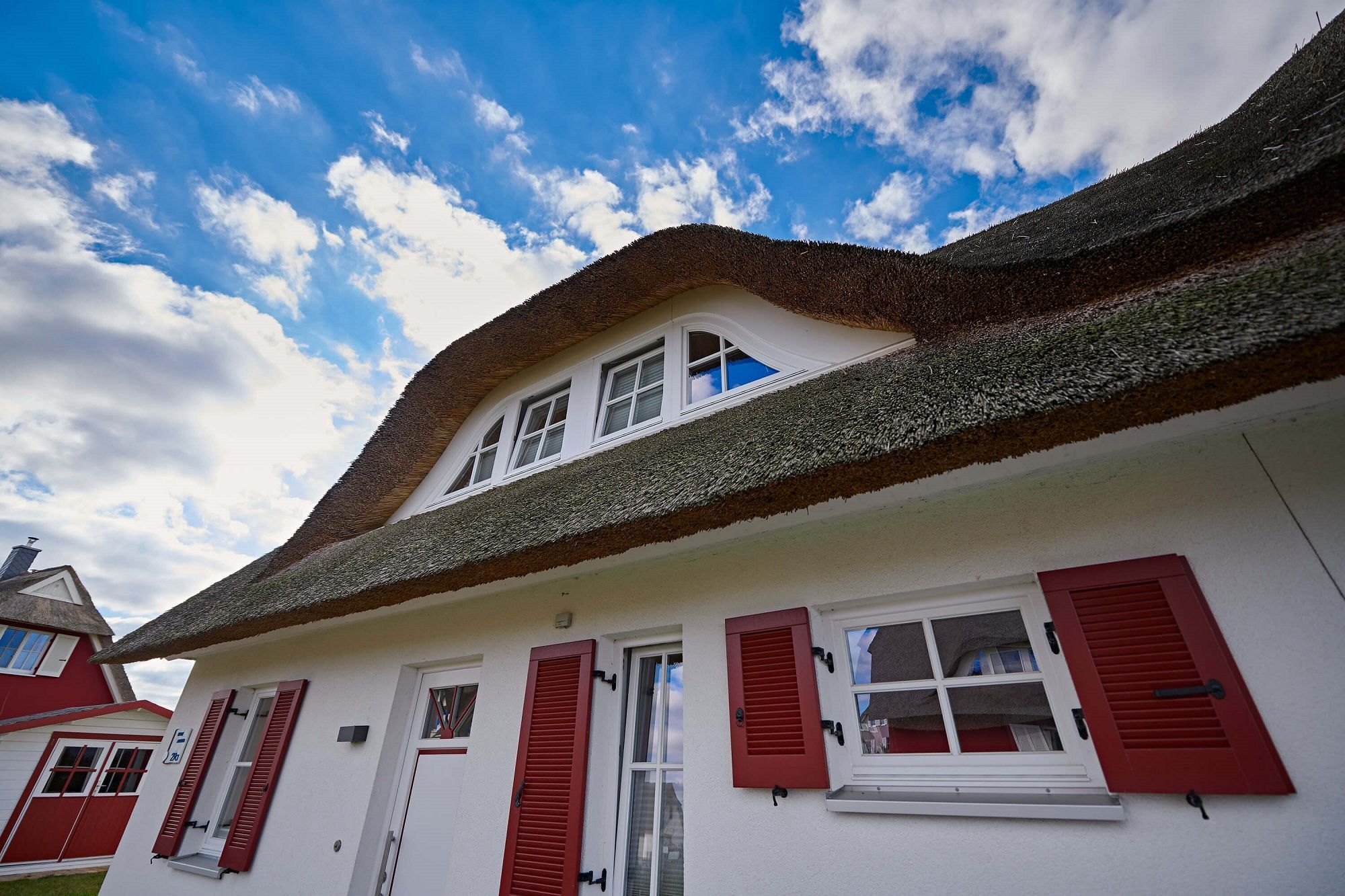 Im oberen Bereich stehen Ihnen zwei Schlafzimmer mit je einem Boxspringbett und Kommoden zur Verfügung. Ein 2. TV ist in einem Schlafzimmer vorhanden. Das Duschbad mit Echtglasduschabtrennung, Waschbecken und WC ist in der typischen Fledermausgaube des Reethauses eingerichtet. Im gesamten Haus ist eine Fußbodenheizung verlegt. Zum Sichtschutz sind Pliesses, Vorhänge und Fensterklappläden angebracht. Eine Waschmaschine und Trockner und diverse Putzutensilien sowie Bügelbrett und Bügeleisen sind im HWR verstaut. Im Garten zur Südseite können Sie es sich auf den Gartenmöbel bequem machen und Ihre Blicke über die Wiesen und Felder schweifen lassen. Ein Sonnenschirm ist vorhanden. Zusätzlich ist ein Strandkorb und Loungemöbel zum Entspannen im Garten vorhanden. Zum Grillen steht Ihnen ein Elektrogrill von Weber zur Verfügung. Zum Naturstrand sind es ca. 500 m. Zwei Stellplätze befinden sich direkt am Ferienhaus.