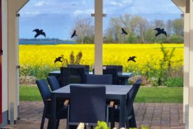 Die Reetdachdoppelhaushälfte Störtebeker mit direktem Seeblick (vorher Kiebitz II) mit 96 qm Wohnfläche befindet sich in der neuen Ferienhaussiedlung De Poeler Drift in Zierow.