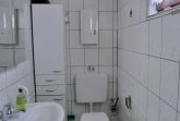 Modernes Tageslichtbad mit WC, Waschbecken und Dusche.