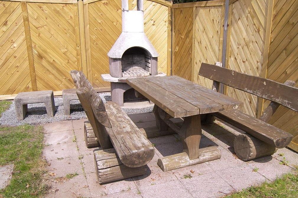 Eingezäuntes Grundstück mit sonniger Terrasse und Garten. Reisekinderbett und Hochstuhl vorhanden.