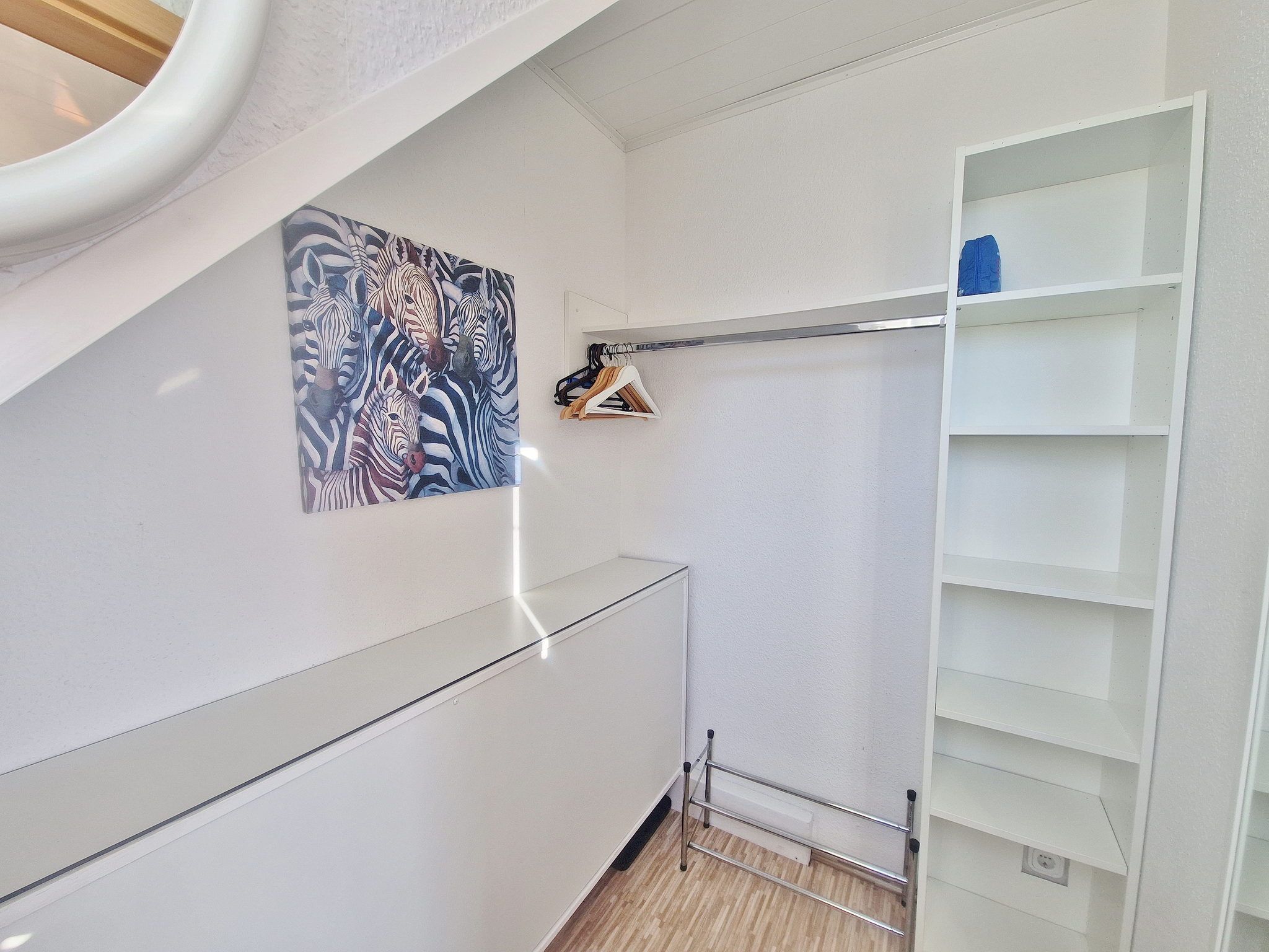 Kleine separate Abstellkammer als Kleiderschrank benutzbar.