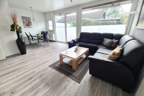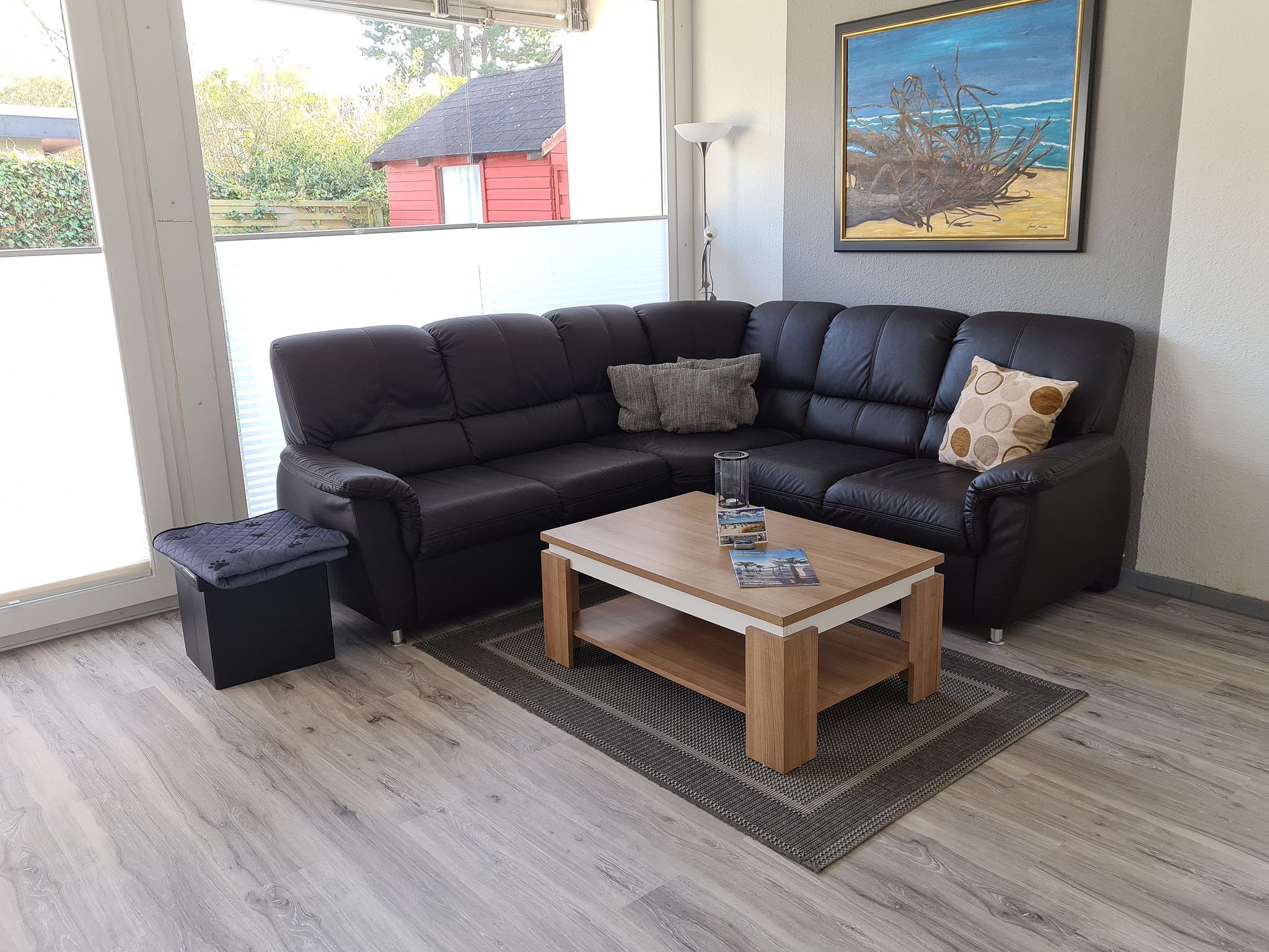 Das große, moderne Wohnzimmer (Vinylboden) ist mit Sat-TV und einem Radio ausgestattet und befindet sich im Erdgeschoss.
