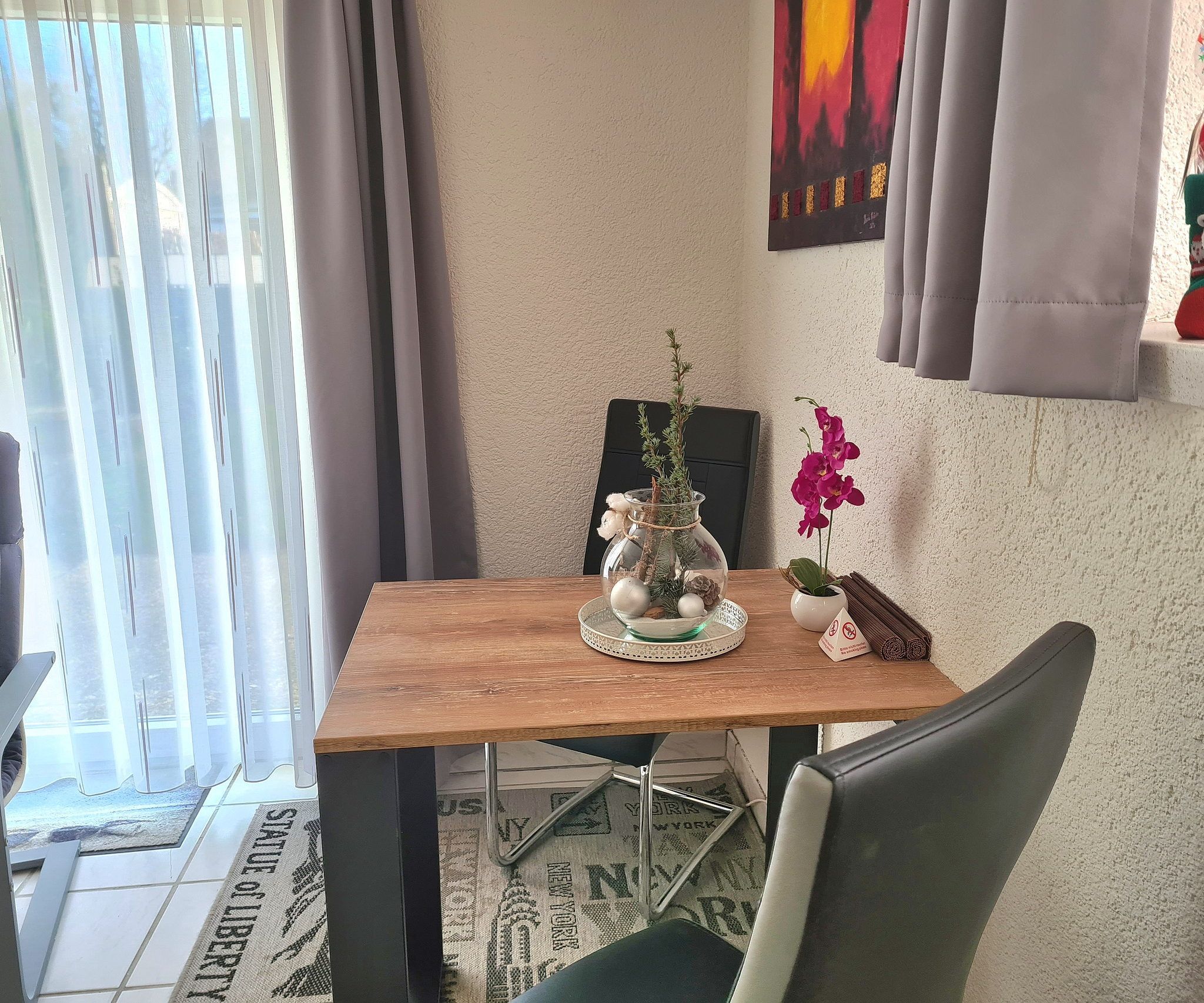 Große, sonnige, eingezäunte Terrasse, W-Lan Anschluss, niedrige Raumhöhe.