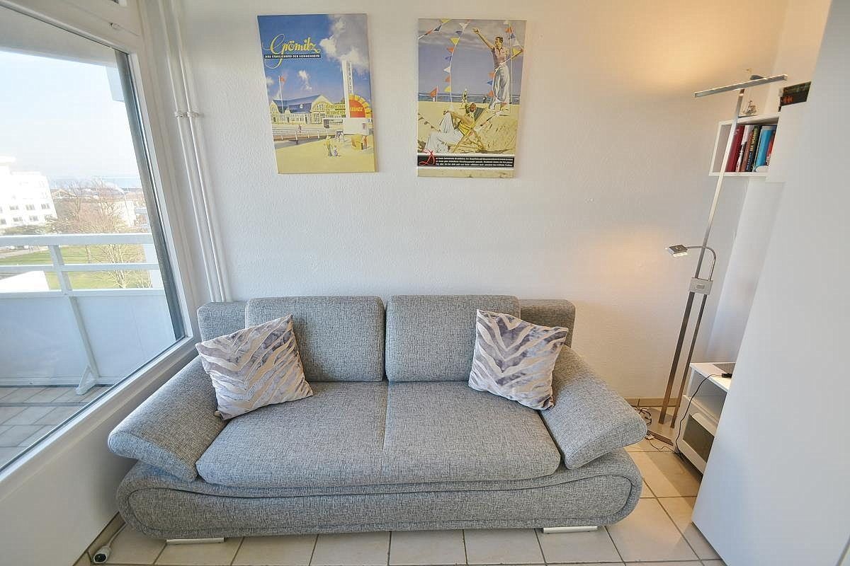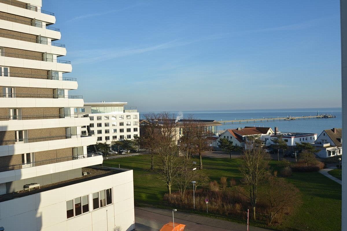 Die Wohnung liegt im 6. OG. Vom Balkon Blick auf die Ostsee.