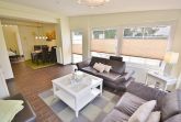 Moderne, komplett ausgestattete, offene Küche mit 4 Platten Cerankochfeld, Backofen, Spülmaschine, Kühlschrank mit 3-Sterne Gefrierfach, Kaffeemaschine, Toaster, Wasserkocher und Mixer.