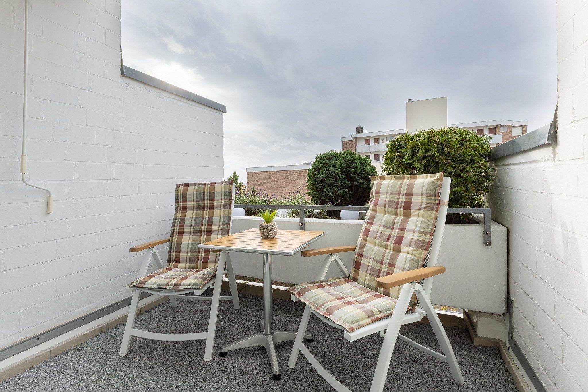 Balkon in süd-westliche Richtung mit seitlichem Seeblick und Markise, sehr steile Auffahrt zum PKW-Stellplatz, Waschmaschine und Trockner im Haus, Fahrstuhl mit ebenerdigem Zugang.