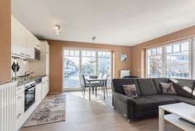 Das moderne Wohnhaus befindet sich in zentraler Lage von Grömitz nur wenige Gehminuten vom Strand entfernt. Alle Wohnungen sind barrierefrei durch einen Aufzug erreichbar. Die Parkplätze befinden sich hinter dem Gebäude.
