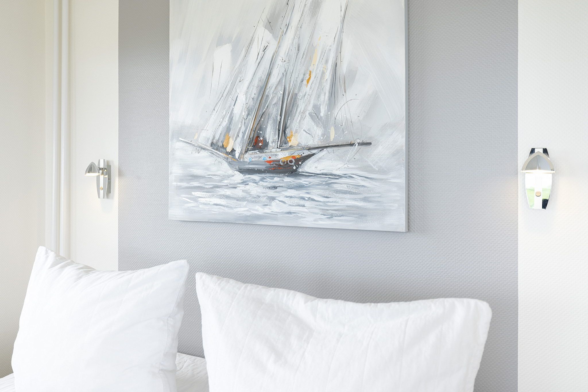 Modern ausgestattetes, helles und freundliches Wohn- und Schlafzimmer mit direktem Zugang zum großen Eckbalkon in südliche und südwestliche Richtung. Das Zimmer ist mit einem Essplatz für 4 Personen, einem Ecksofa, einem Couchtisch und einem Doppelbett (2x 80x190cm) ausgestattet. Zur Unterhaltung steht ein Radio mit CD-Player und ein Flachbildschirm zur Verfügung. Das Zimmer ist gefliest, die Fenster lassen sich durch Innenrollos etwas verdunkeln.