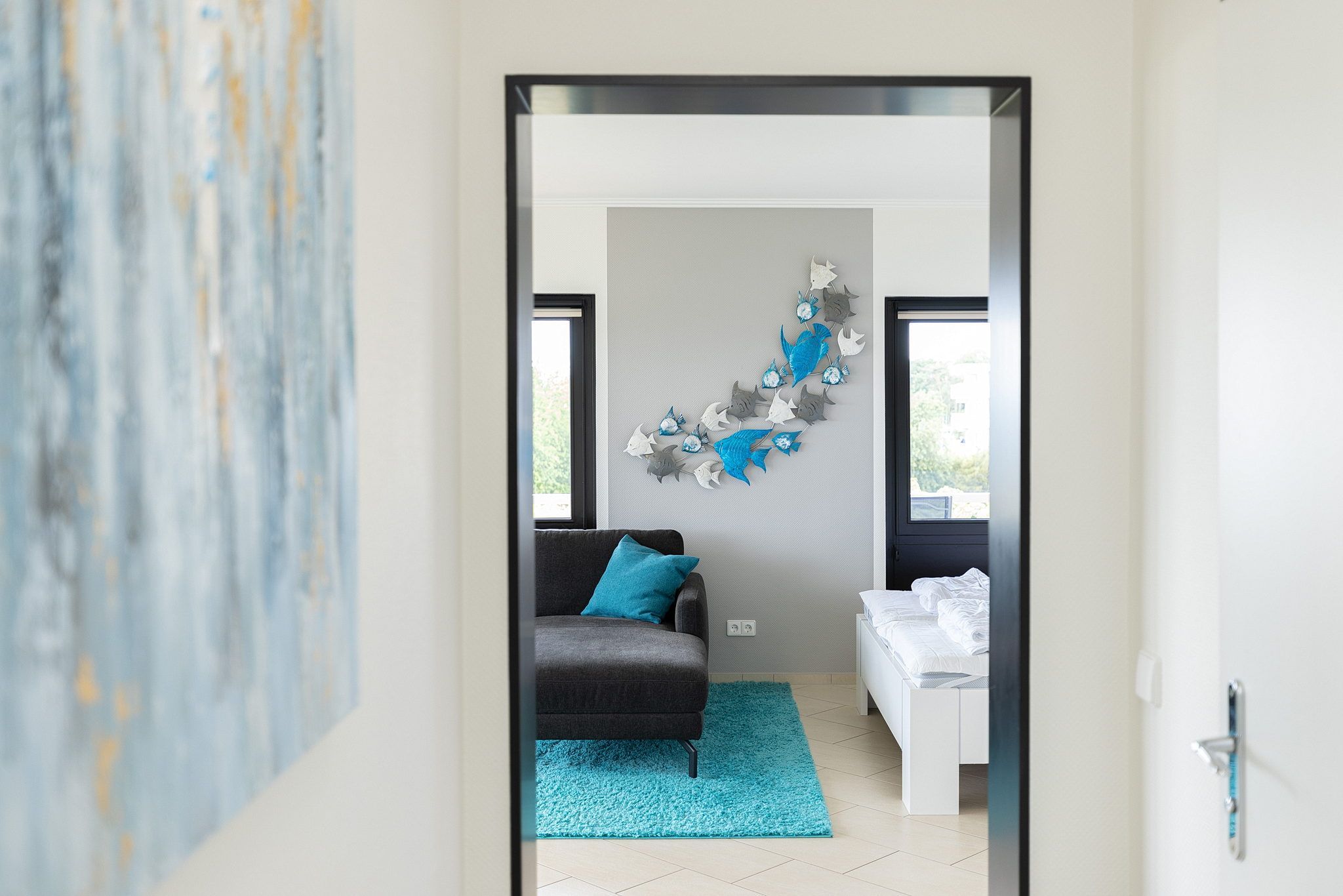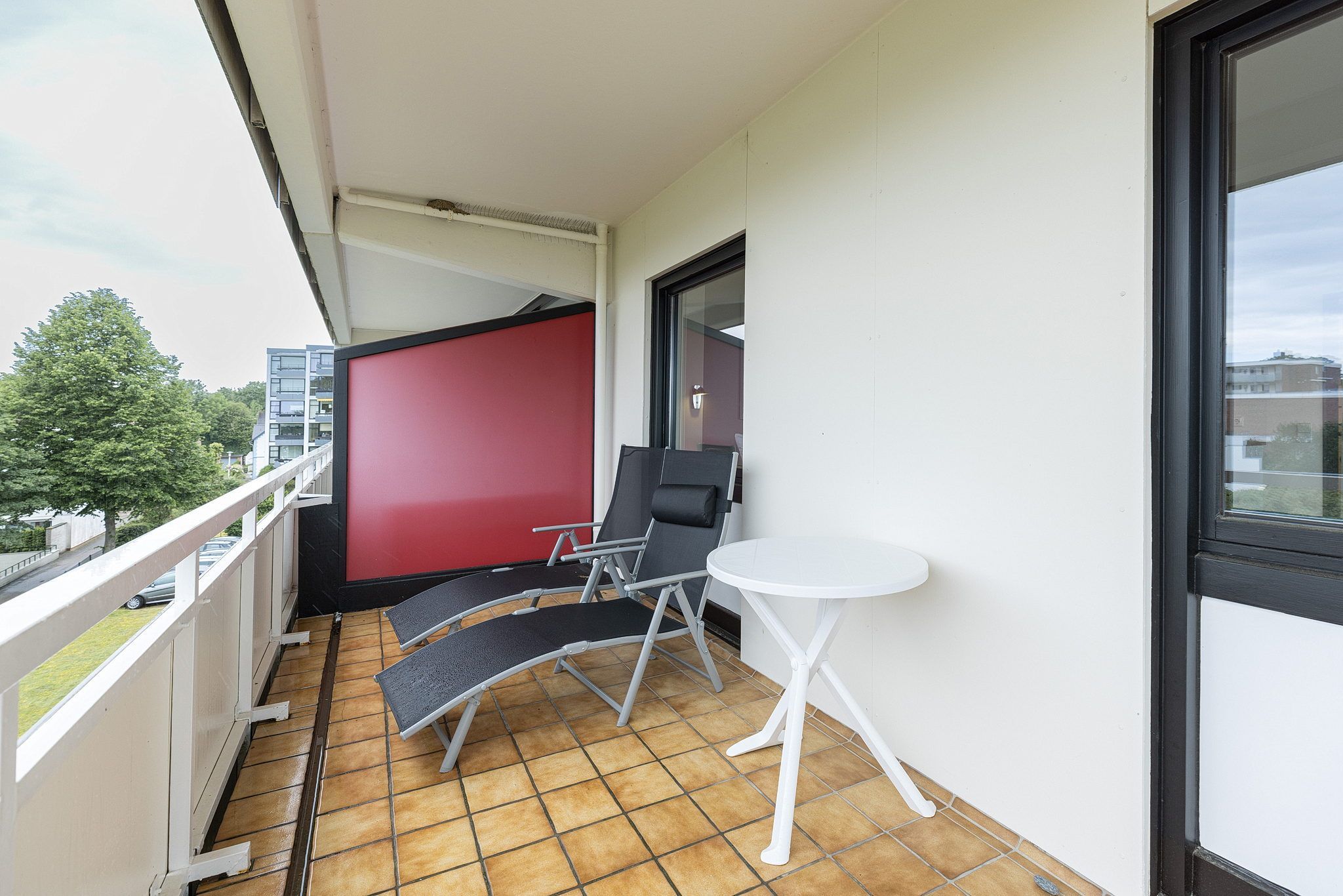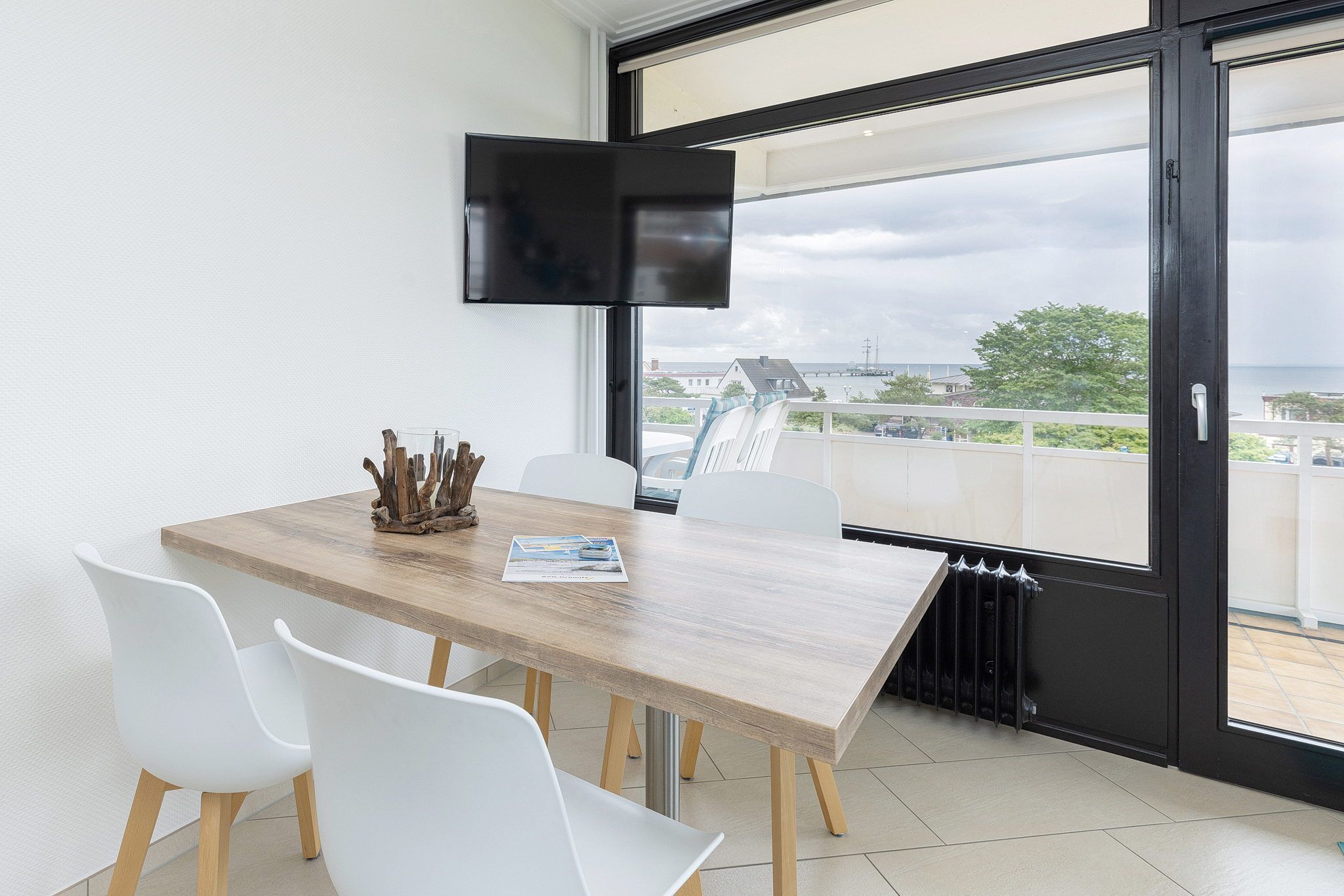 Eine begrenzte Parkmöglichkeit steht am Haus zur Verfügung, Münzwaschmaschinen, Trockner, Aufzug sowie ein Fahrradraum im Haus. Großer, sonniger Eckbalkon in südliche und westliche Richtung mit Blick auf die Ostsee. Kostenloses WLAN.