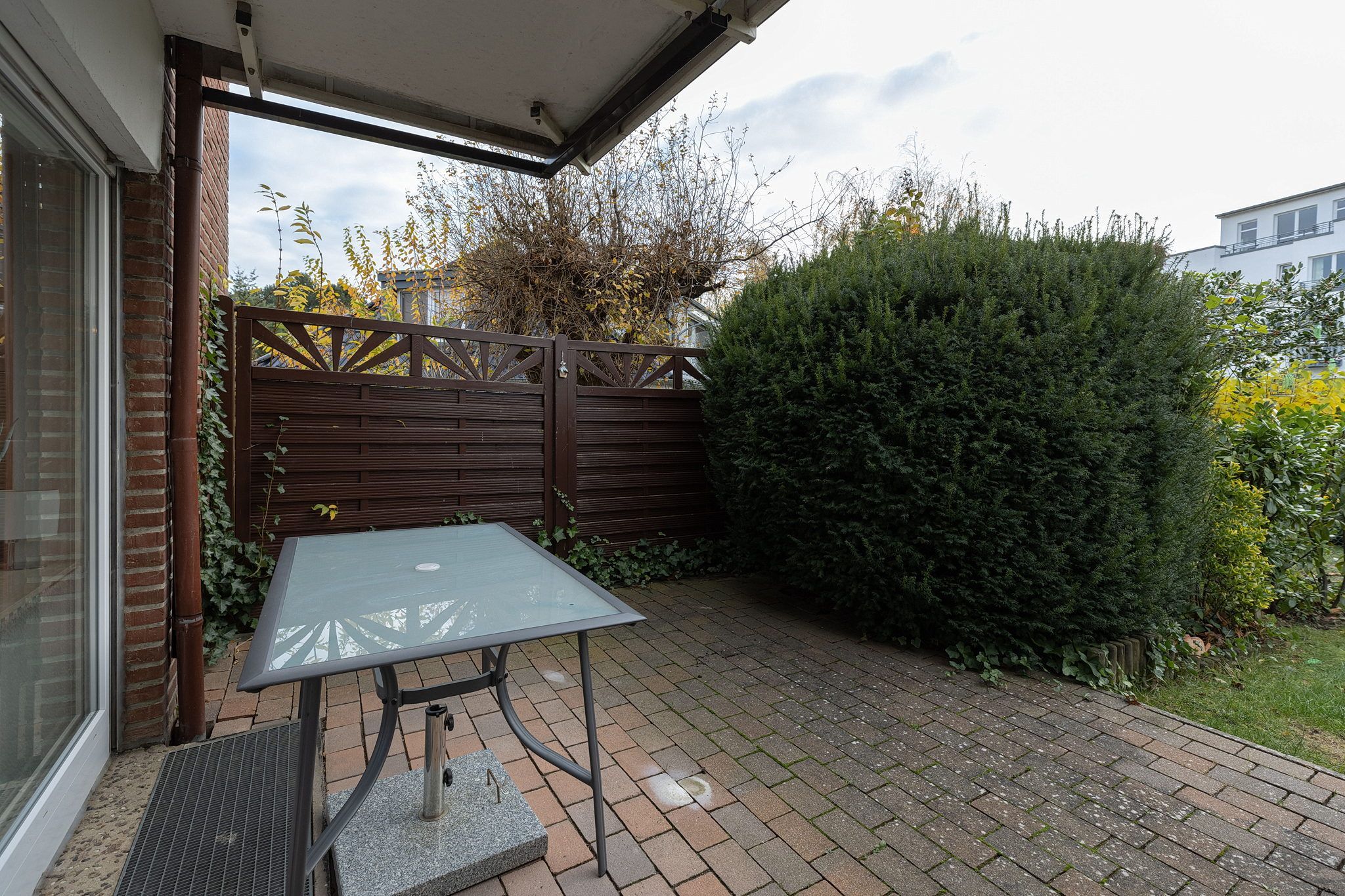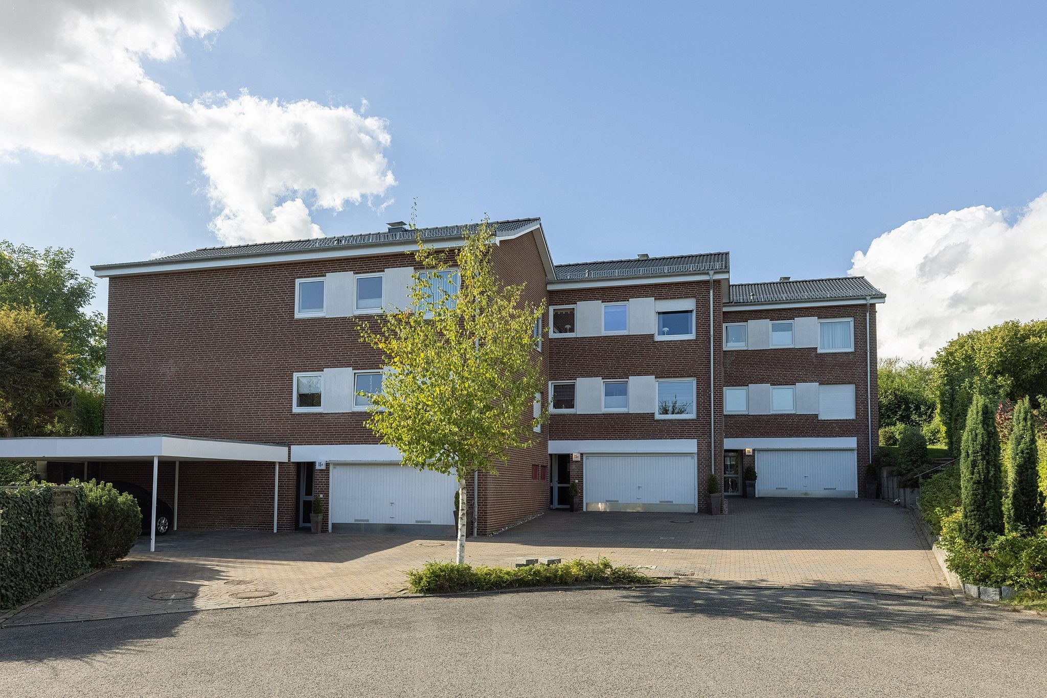Das Appartement ist die untere Wohnung einer Reihenhaus ähnlich-gestalteten Anlage.