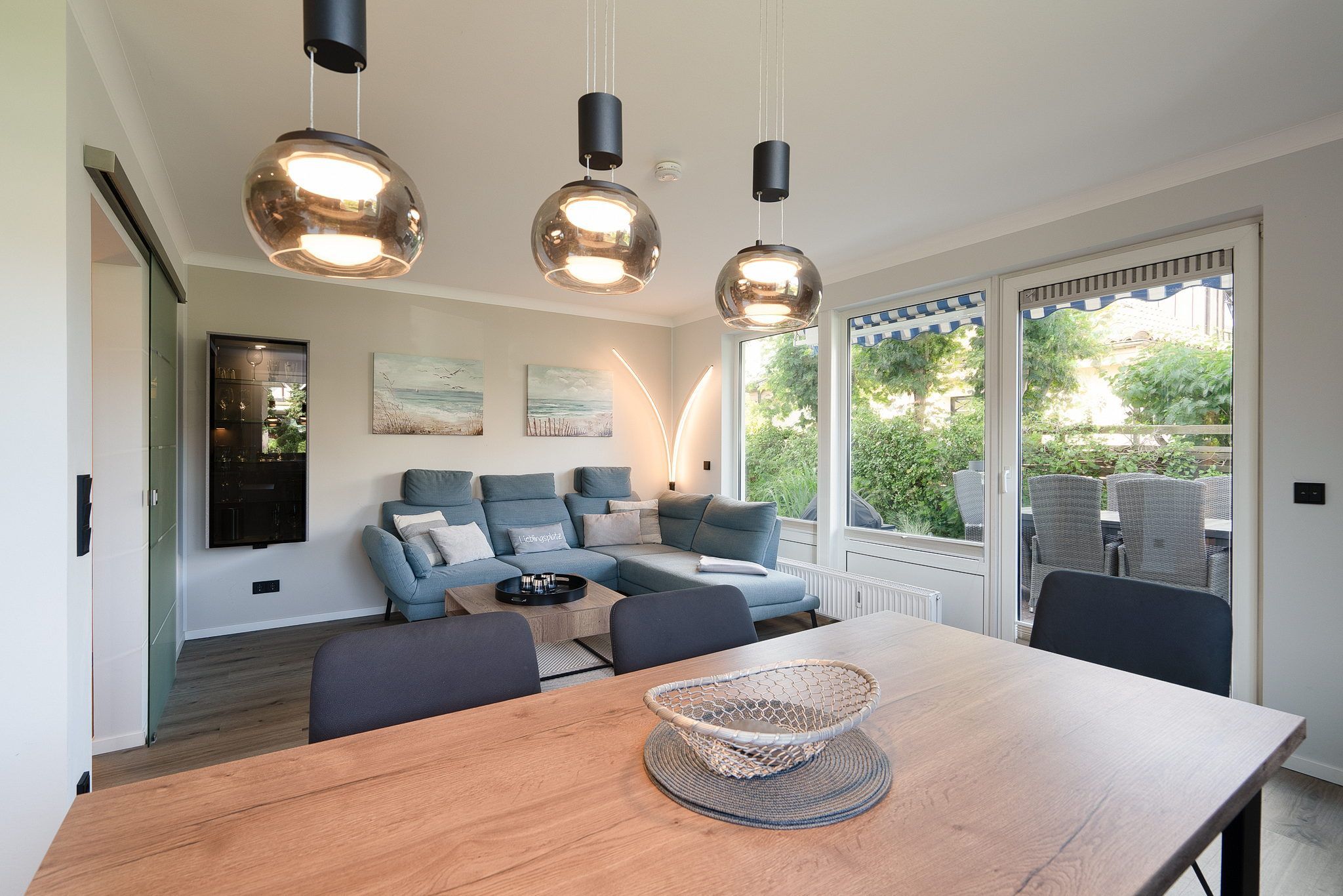 So können Sie sich nun auf einen geräumigen und modernen Wohn-/Essbereich mit offener Küche freuen - mit direkten Zugang zur Terrasse.